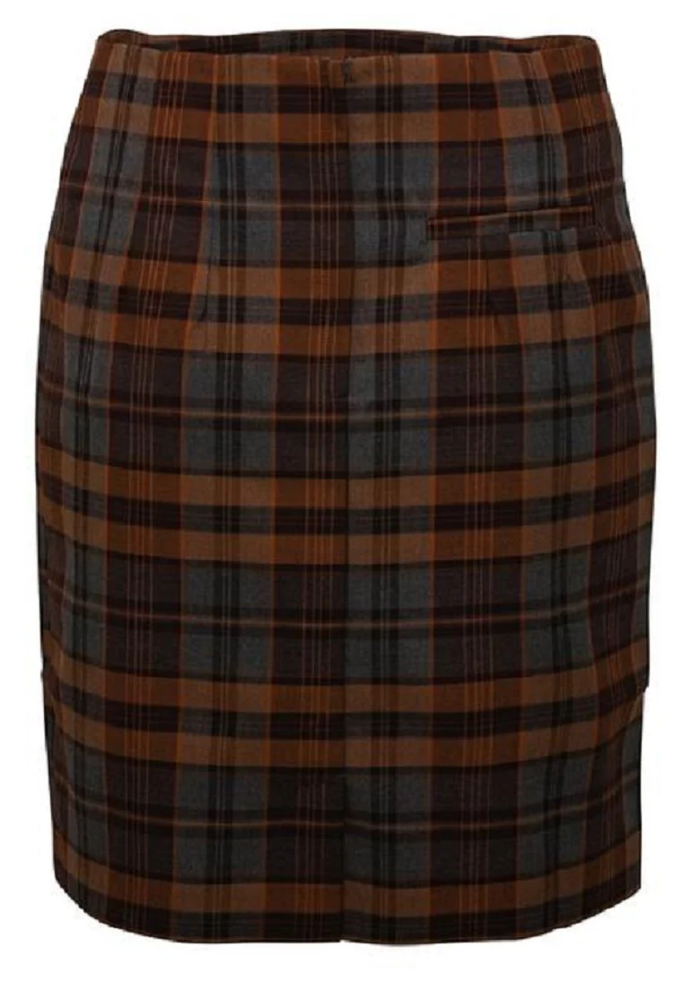Relco Ladies Retro Rude Girl Grey/Tan Tartan Pencil Skirt