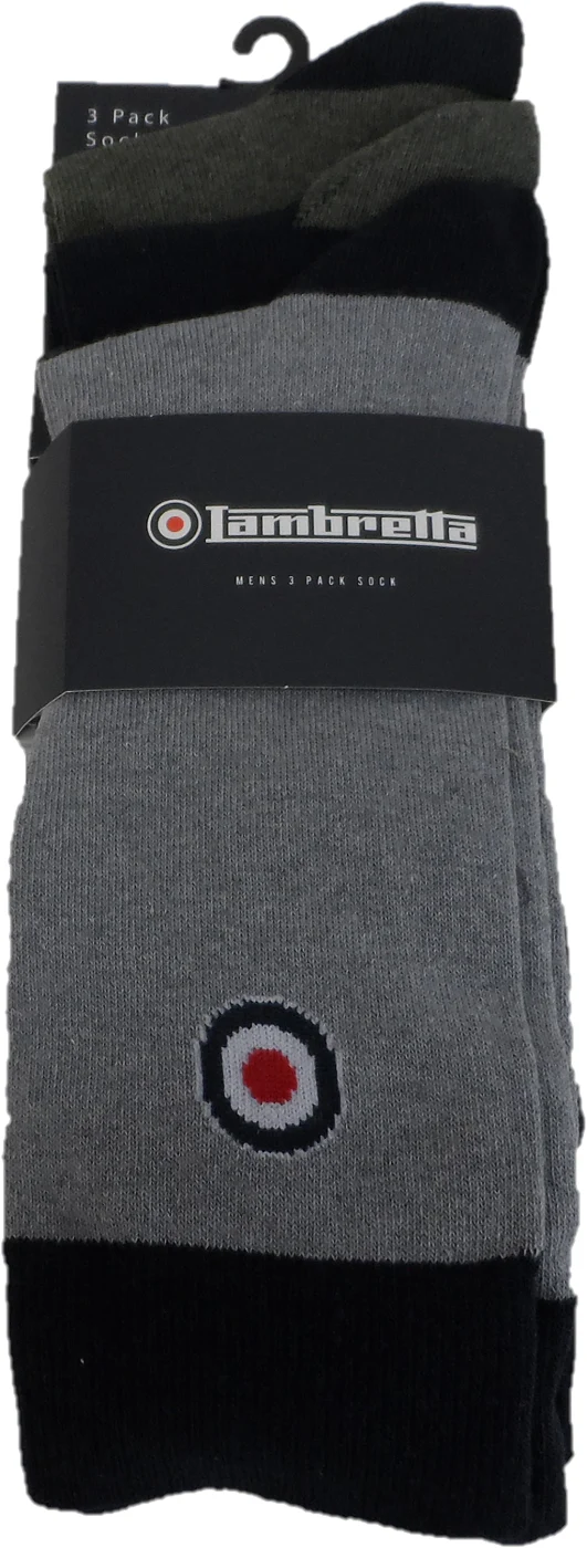 Lambretta Mens 3 Pair Pack of Grey/Navy/Khaki Retro Socks