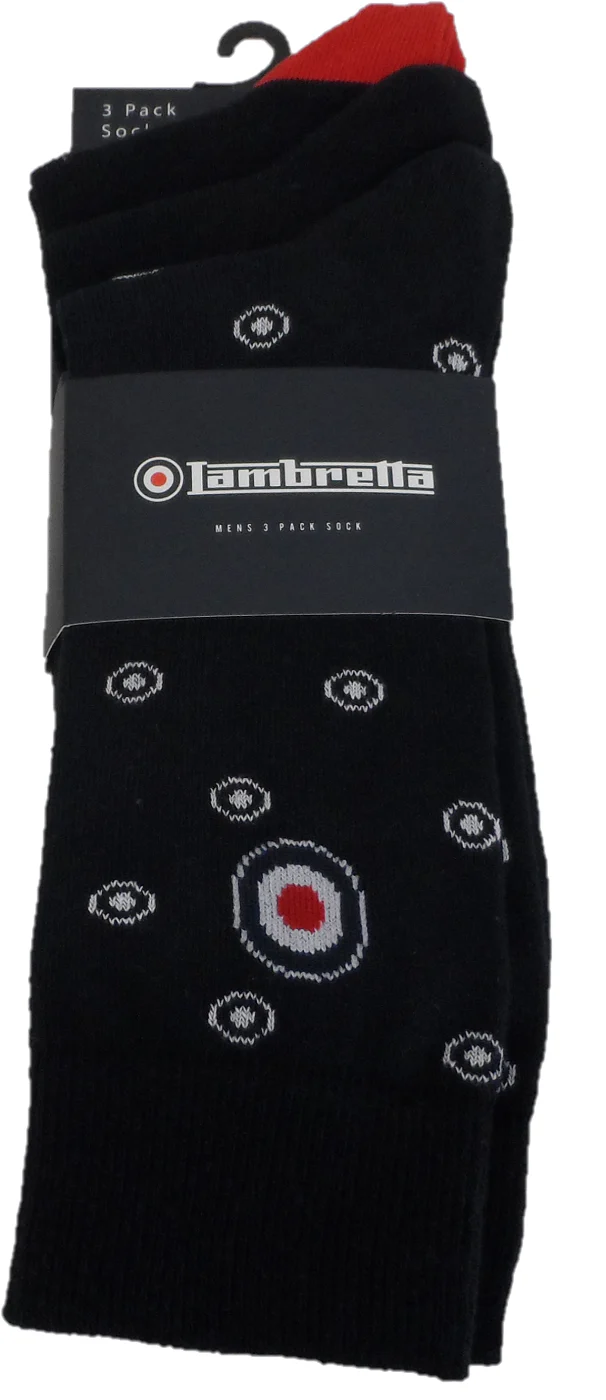 Lambretta Mens 3 Pair Pack of Navy/Red/White Retro Socks