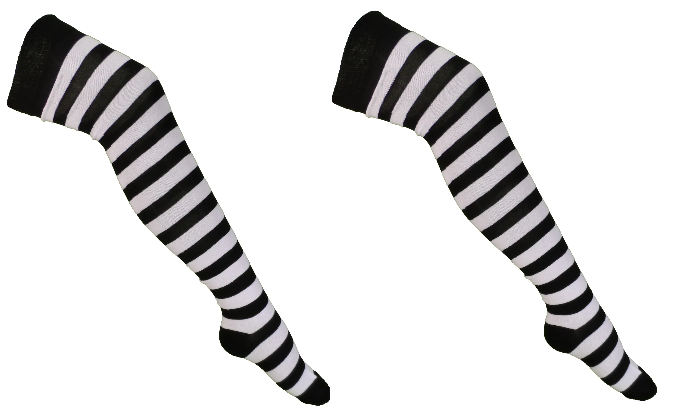 Ladies 2 Pair Pack of White/Black Striped Over the Knee Socks