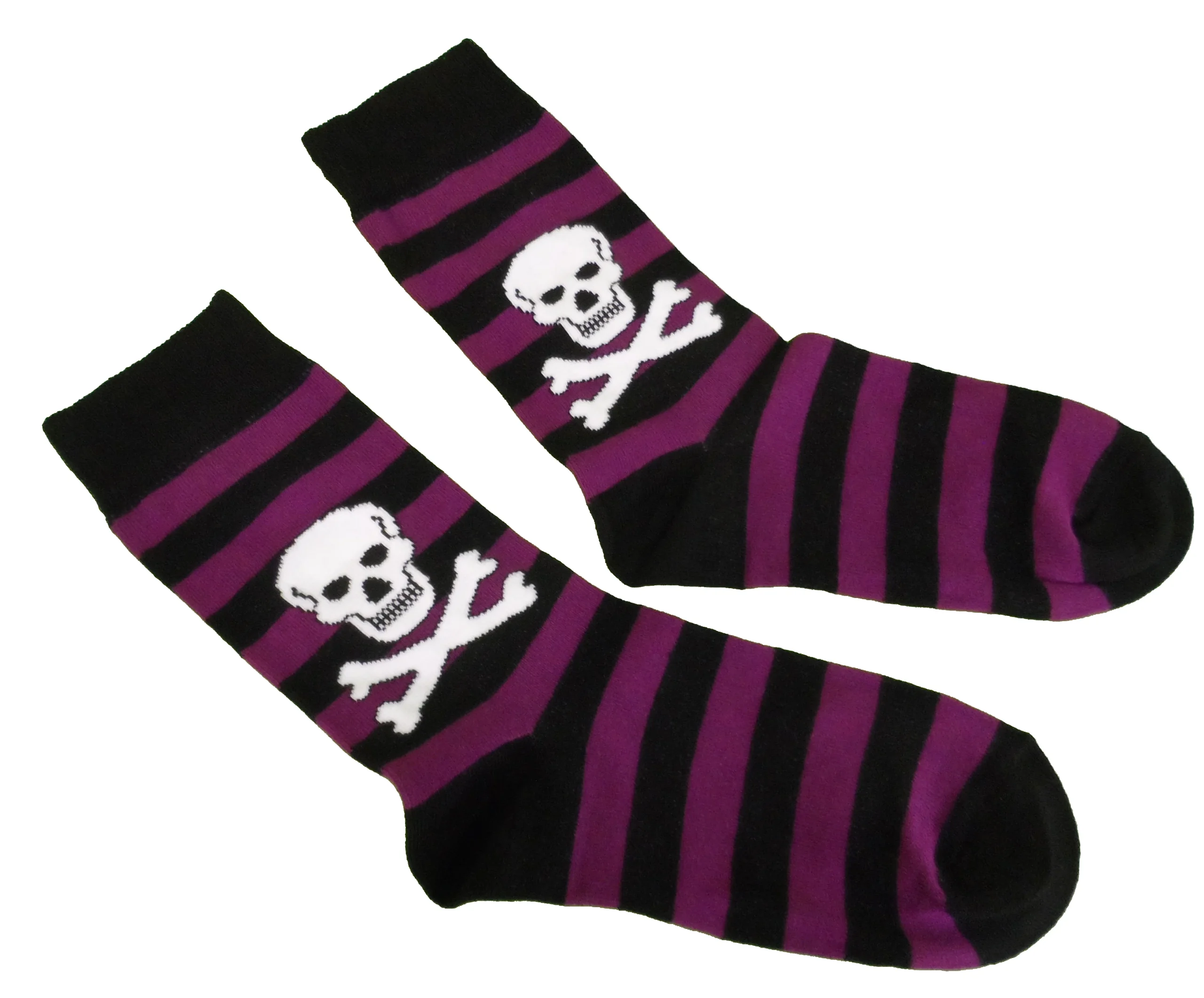 LADIES 2 PAIR Purple STRIPED SKULL AND CROSSBONE SOCKS