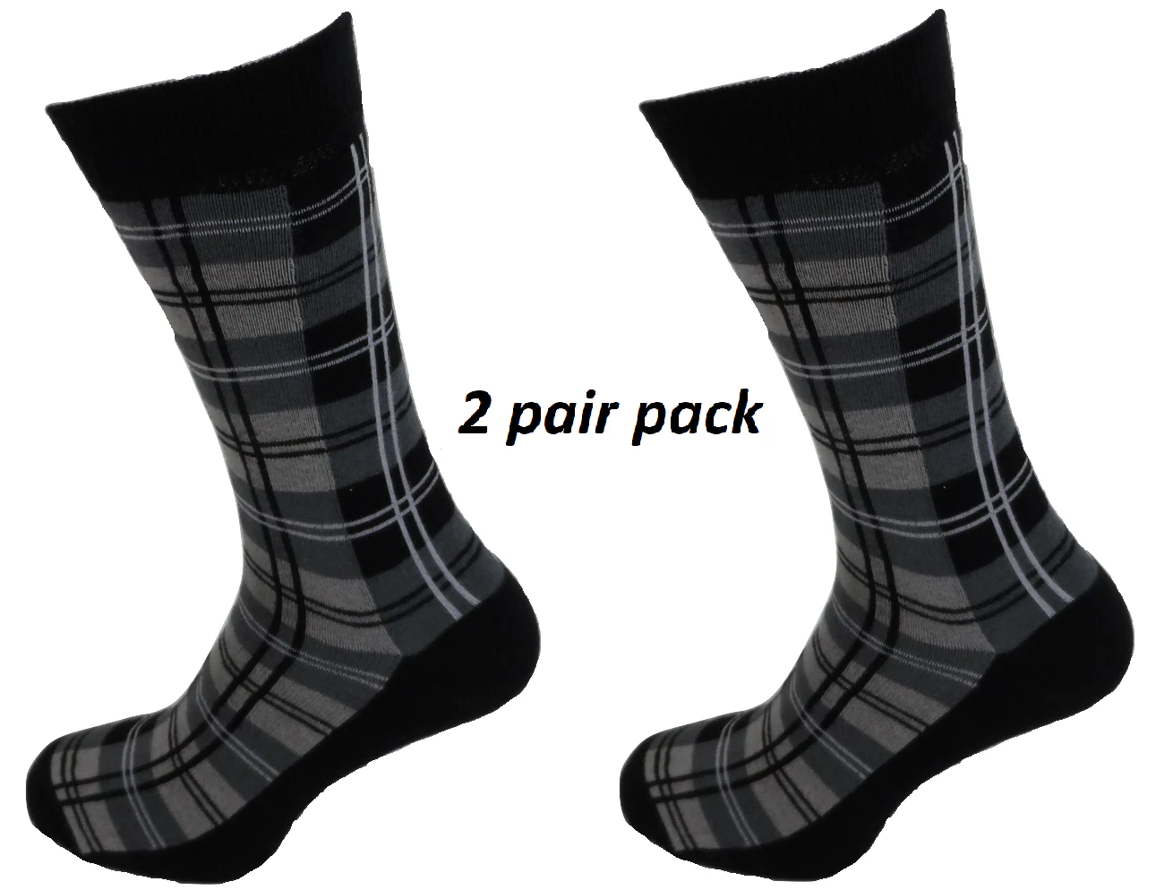 Mens 2 Pair Pack Grey Tartan Retro Socks