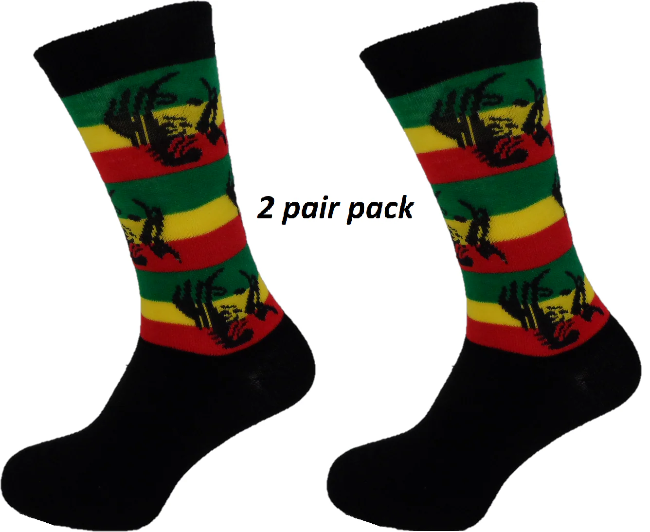 Mens 2 Pair Pack of Lion Of Judah Rasta Retro Socks
