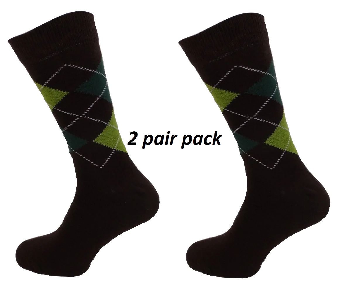 Mens 2 Pair Pack of Brown Argyle Patterned Socks