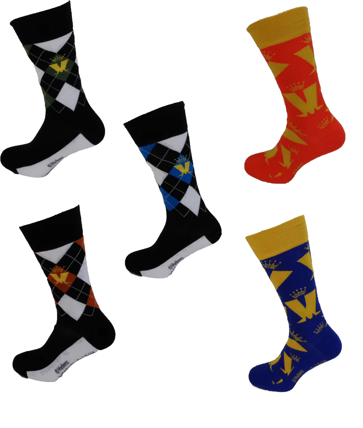 Mens 2 Pair Pack Yellow and Red Retro Socks