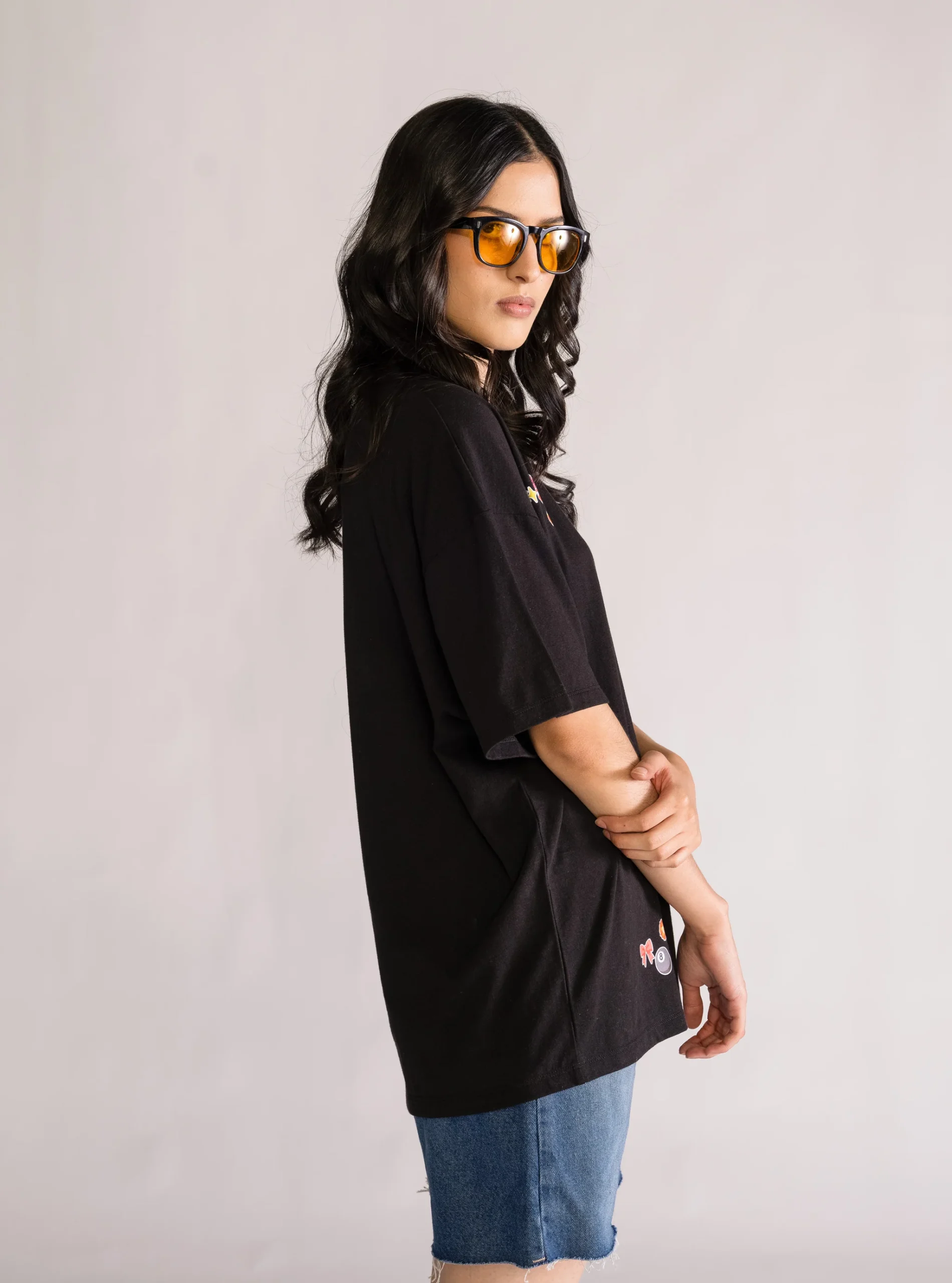 Sticky Situation Oversized Playera, Negro