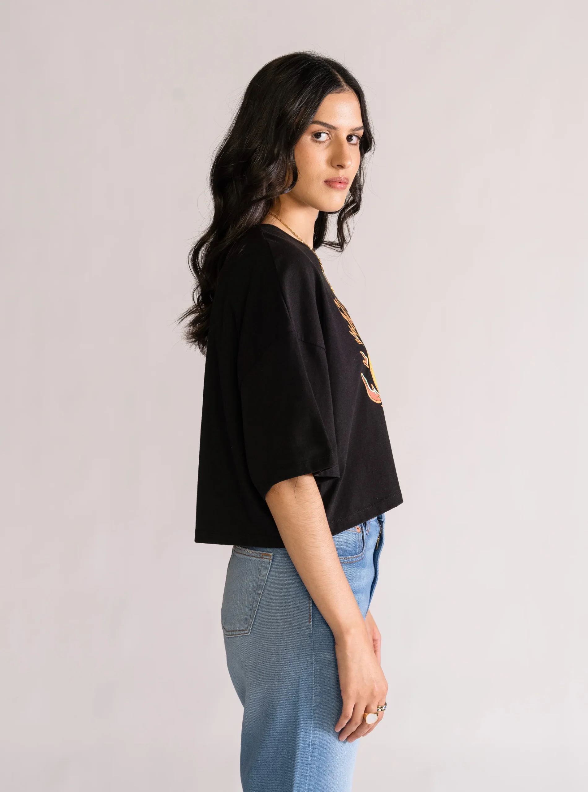 Smashing Fire Cropped Playera, Negro
