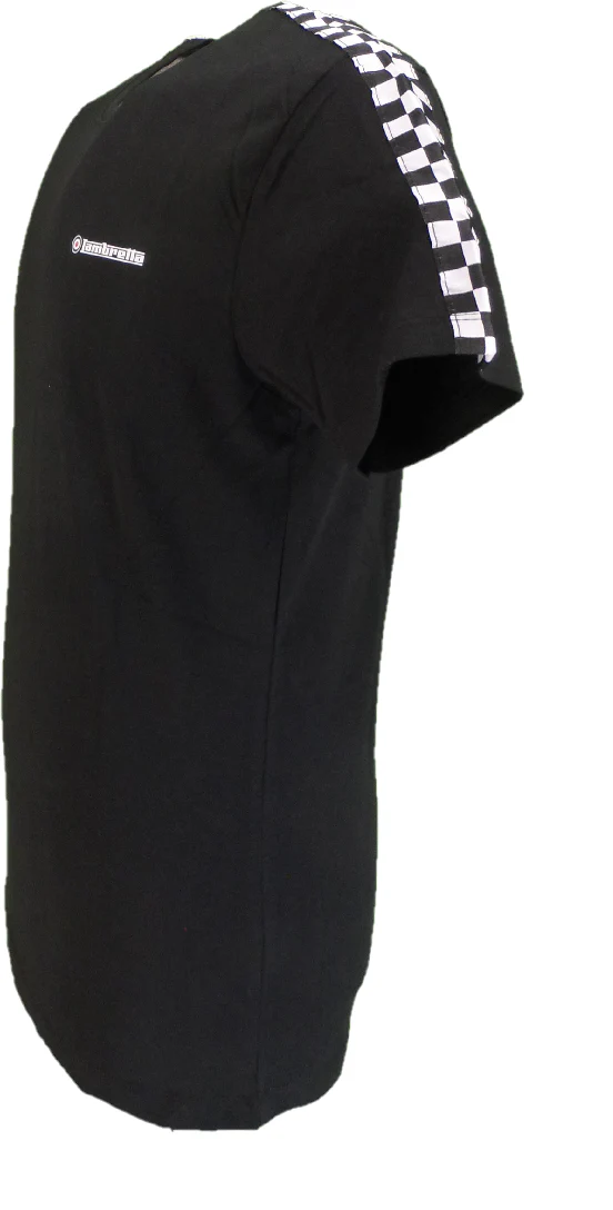 Lambretta Black Checkerboard Taped Shoulder Cotton T Shirt