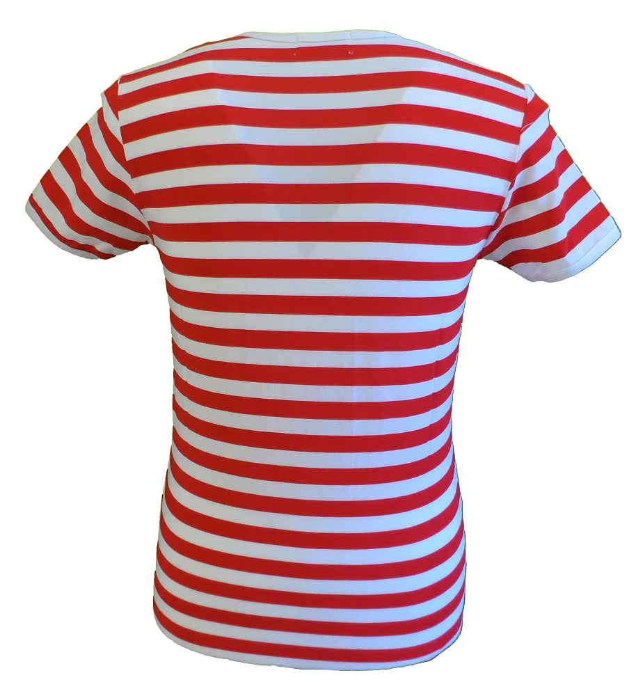 Run & Fly Mens Retro Mod 60s Indie Red & White Cotton T Shirt
