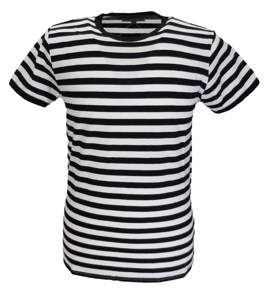Run & Fly Mens Retro Mod 60s Indie Black & White Cotton T-Shirt