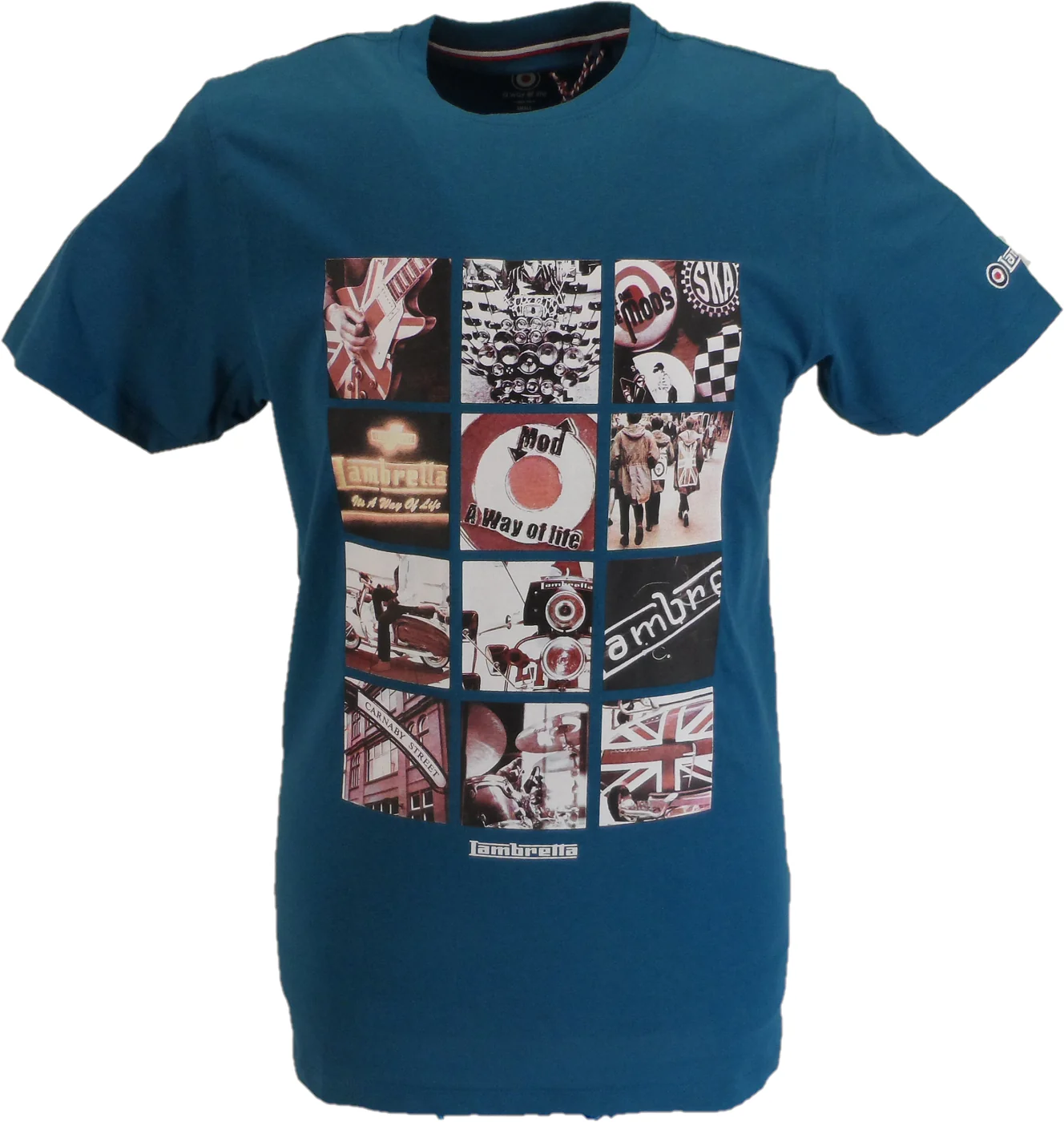 Lambretta Mens Blue Coral Photo Print Retro T Shirt