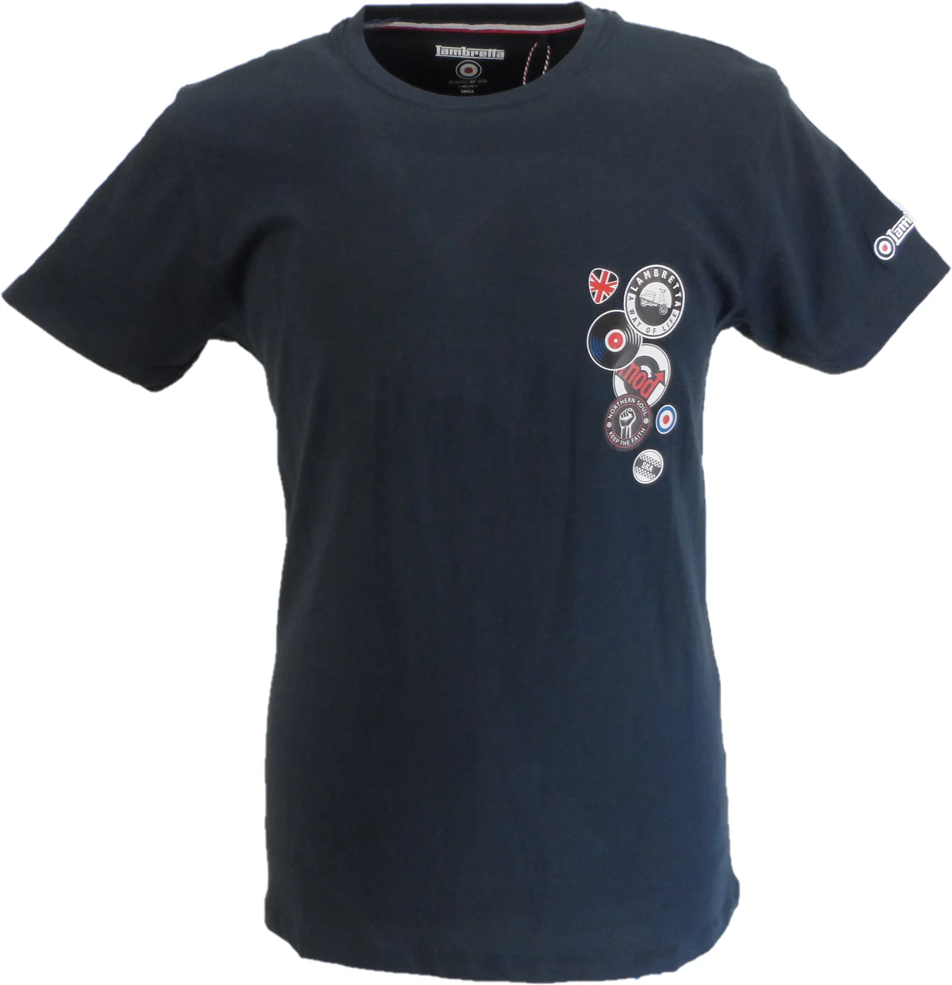 Lambretta Mens Navy Blue Badges Target Retro T Shirt