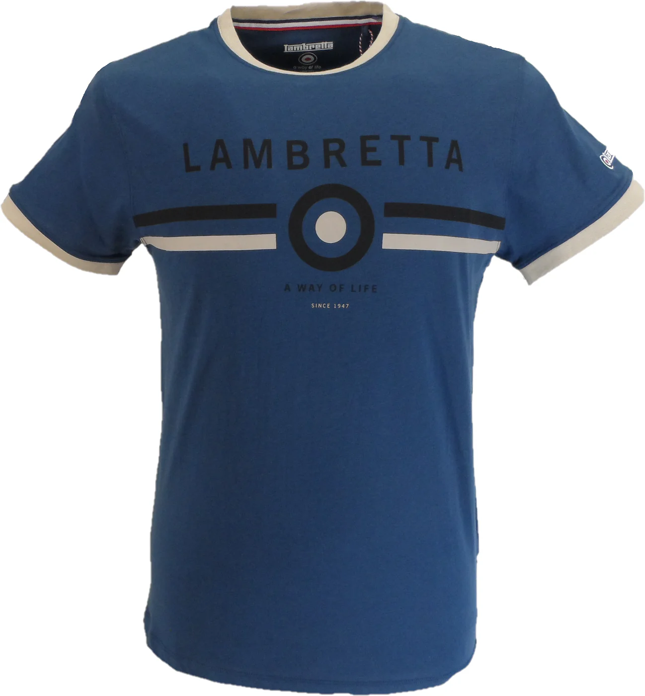 Lambretta Mens Moonlit Ocean Blue Retro Target Ringer T-Shirt