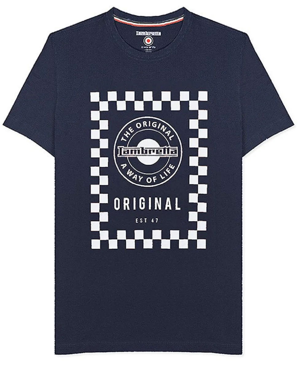 Lambretta Mens Navy Checker Board Retro T Shirt