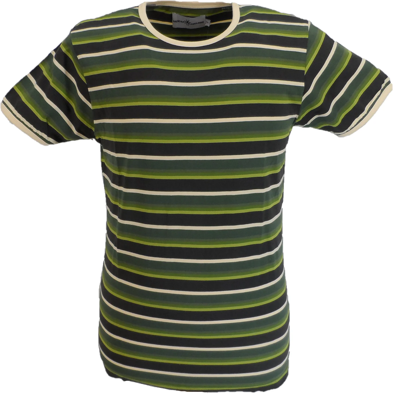 Madcap England Mens Green Multi Striped Ringer T Shirt