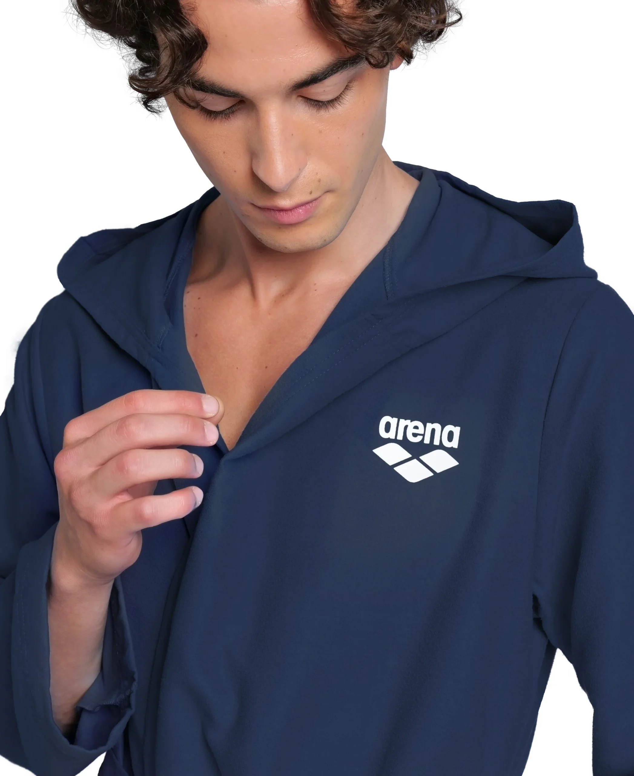 Albornoz compacto de microfibra arena unisex – Azul Marino/Blanco