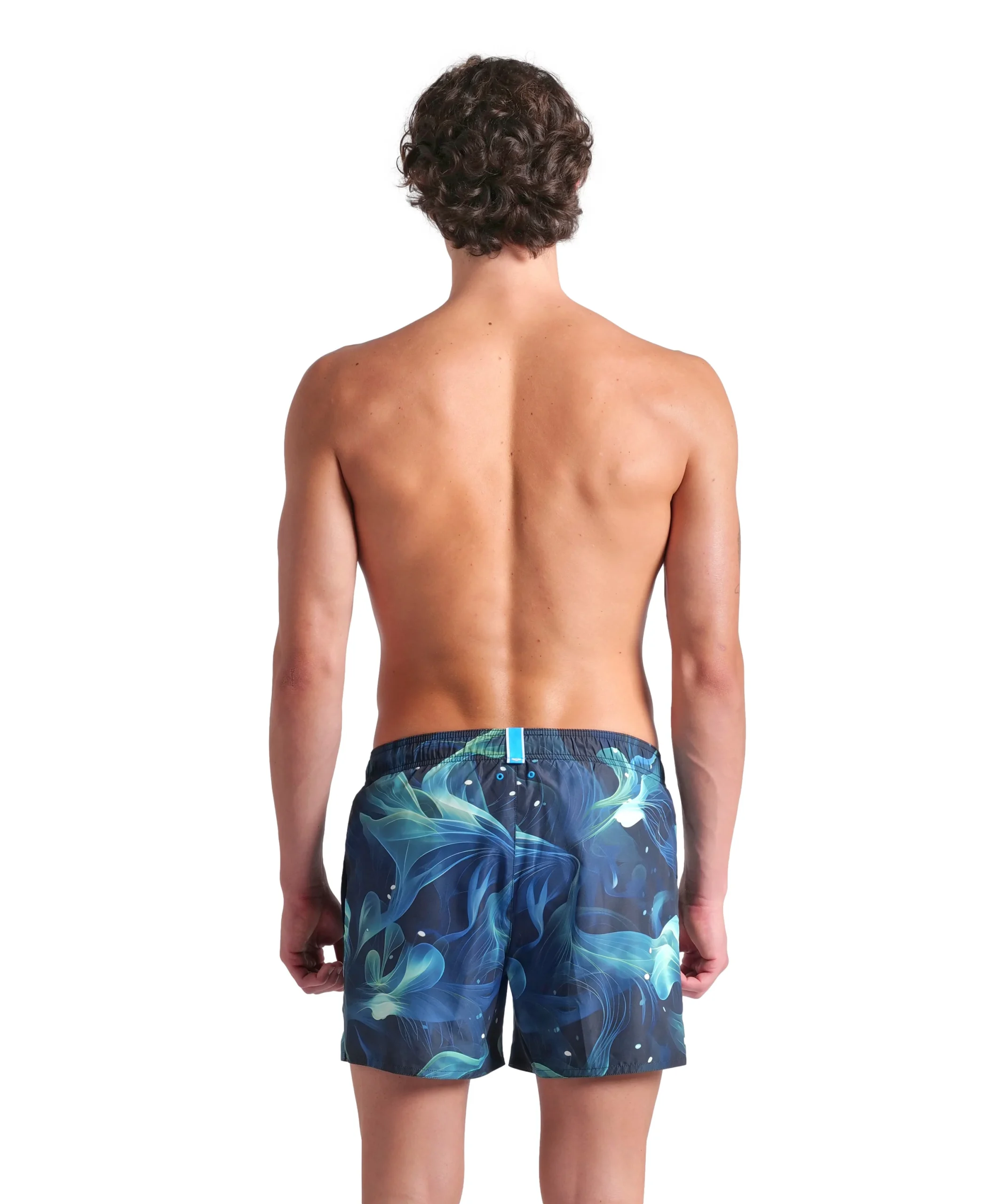 Short de playa bóxer arena para hombre Water Print Allover Marino Multi