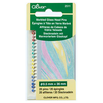 Lindos alfileres con diseño marmoleado en diferentes colores, las cabezas son de vidrio resistente al calor, adecuadas para el planchado.
