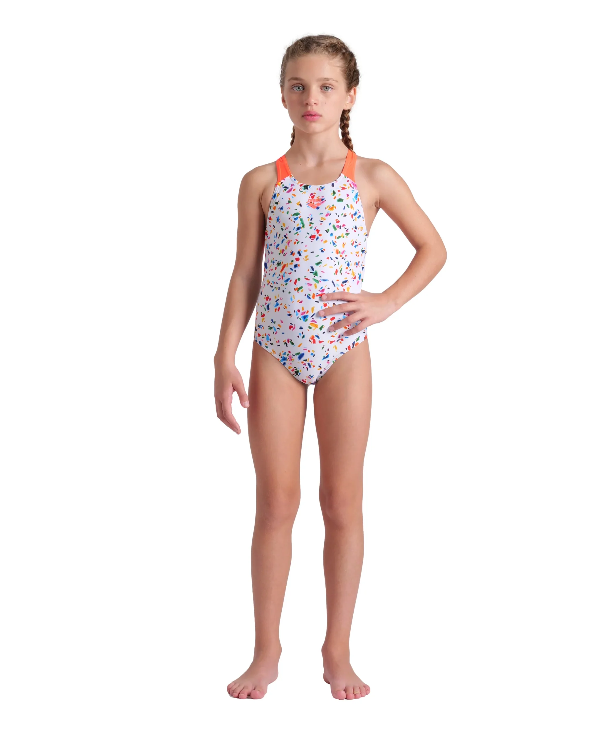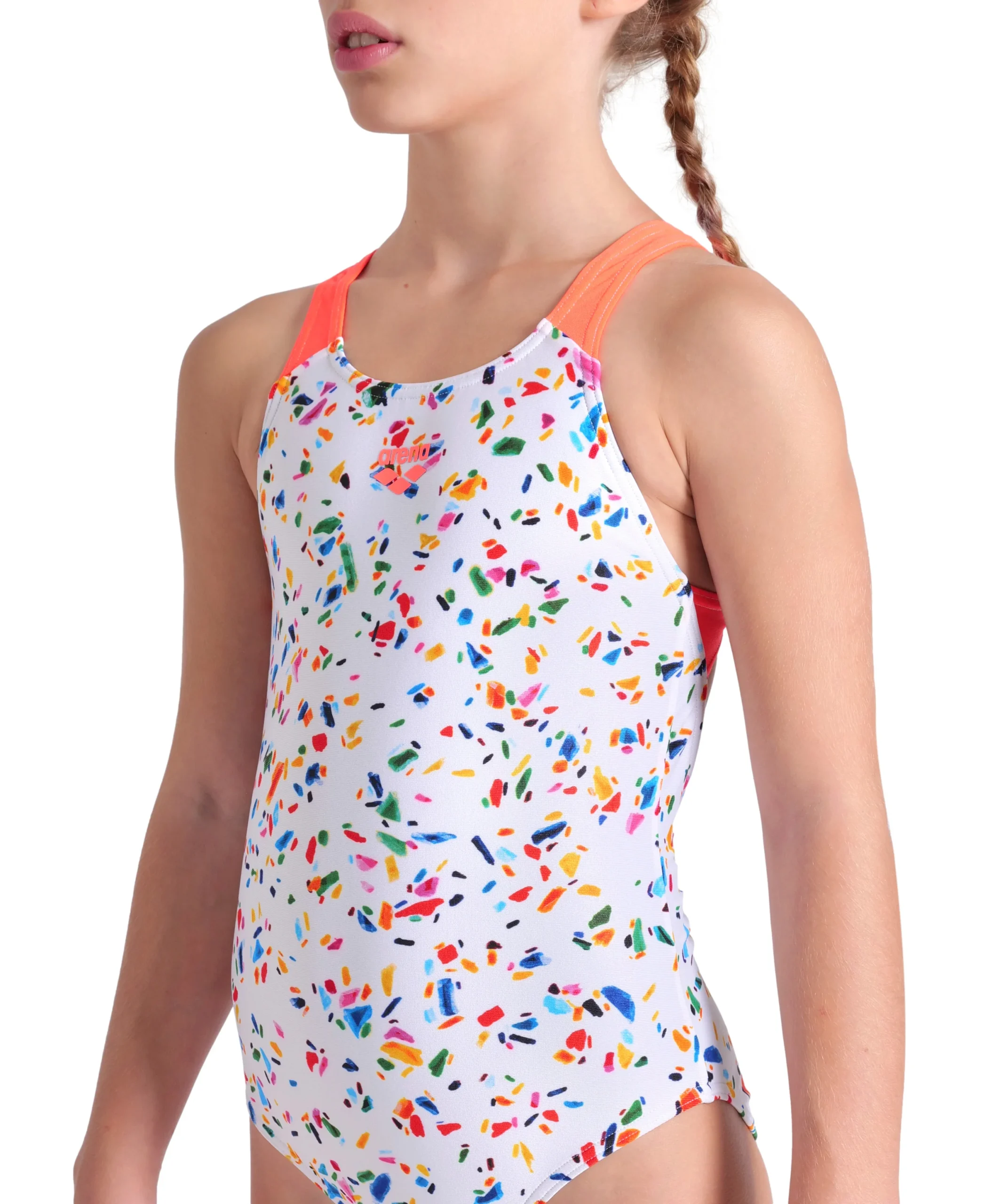 Bañador arena Performance para niña Confetti Swim Pro Back Blanco Multi