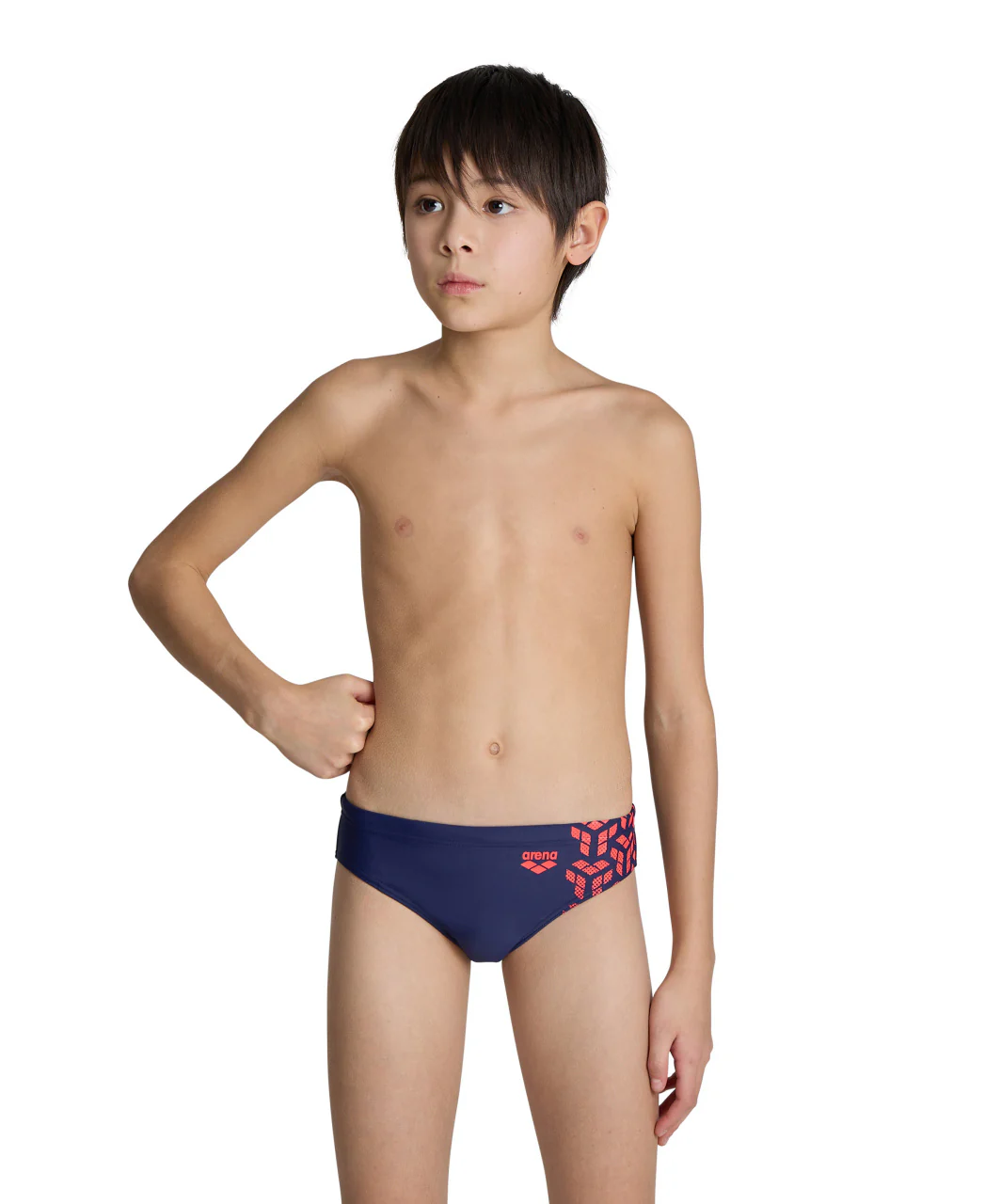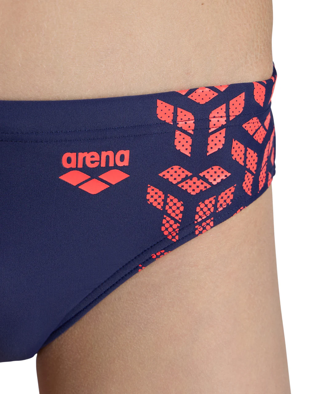 Bañador slip arena Feel para niño Kikko V Azul Marino/Flúor Rojo