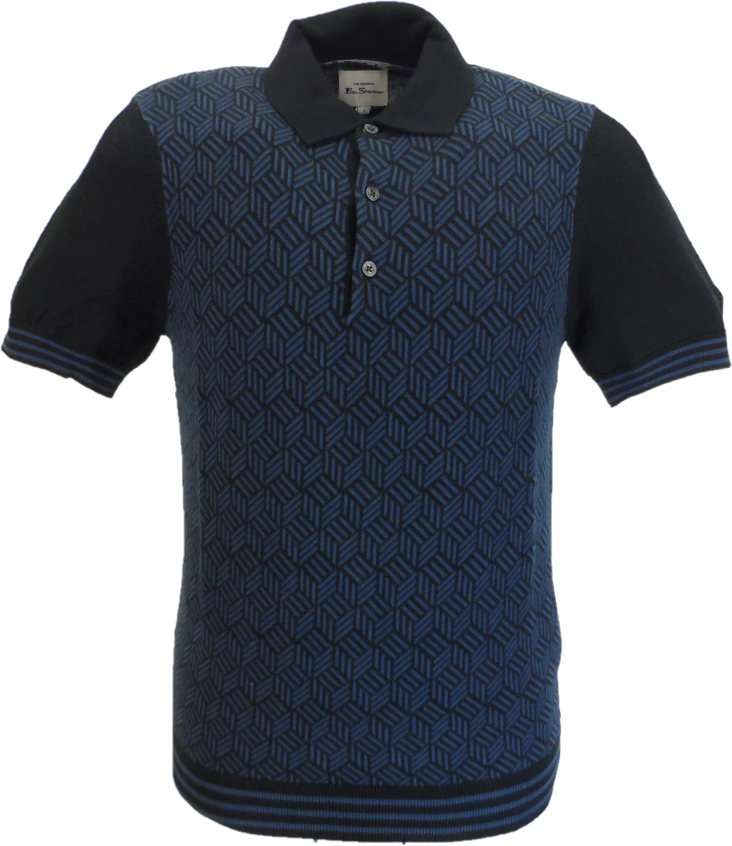 Short sleeve knitted polo designed with a jacquard patterned front and contrast tipping to the hem and cuffs. Branded with a tonal signature ‘Ben Sherman’ sleeve embroidery.