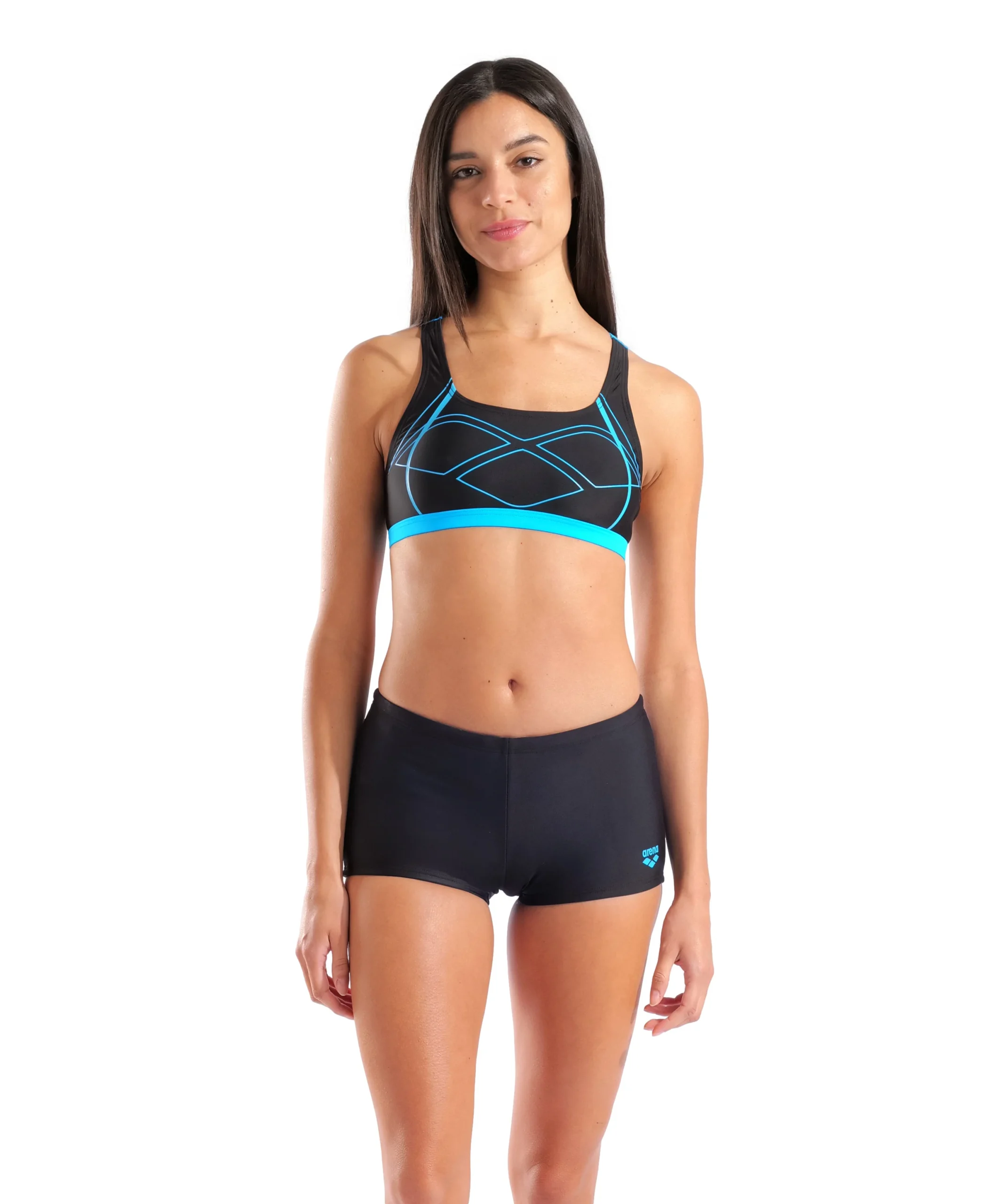 Bikini arena Feel para mujer Graphic – Negro/Turquesa
