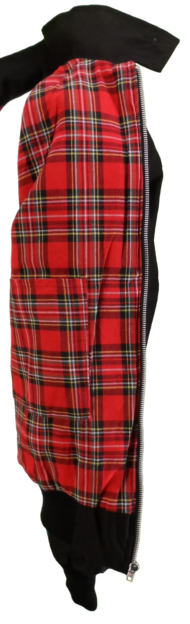 Mazey’s Mens Classic Black Harrington Jacket that’s metal zipped with tartan lining and inner pocket two side pockets with button up flaps collared with the option for buttoning up with two buttons.
