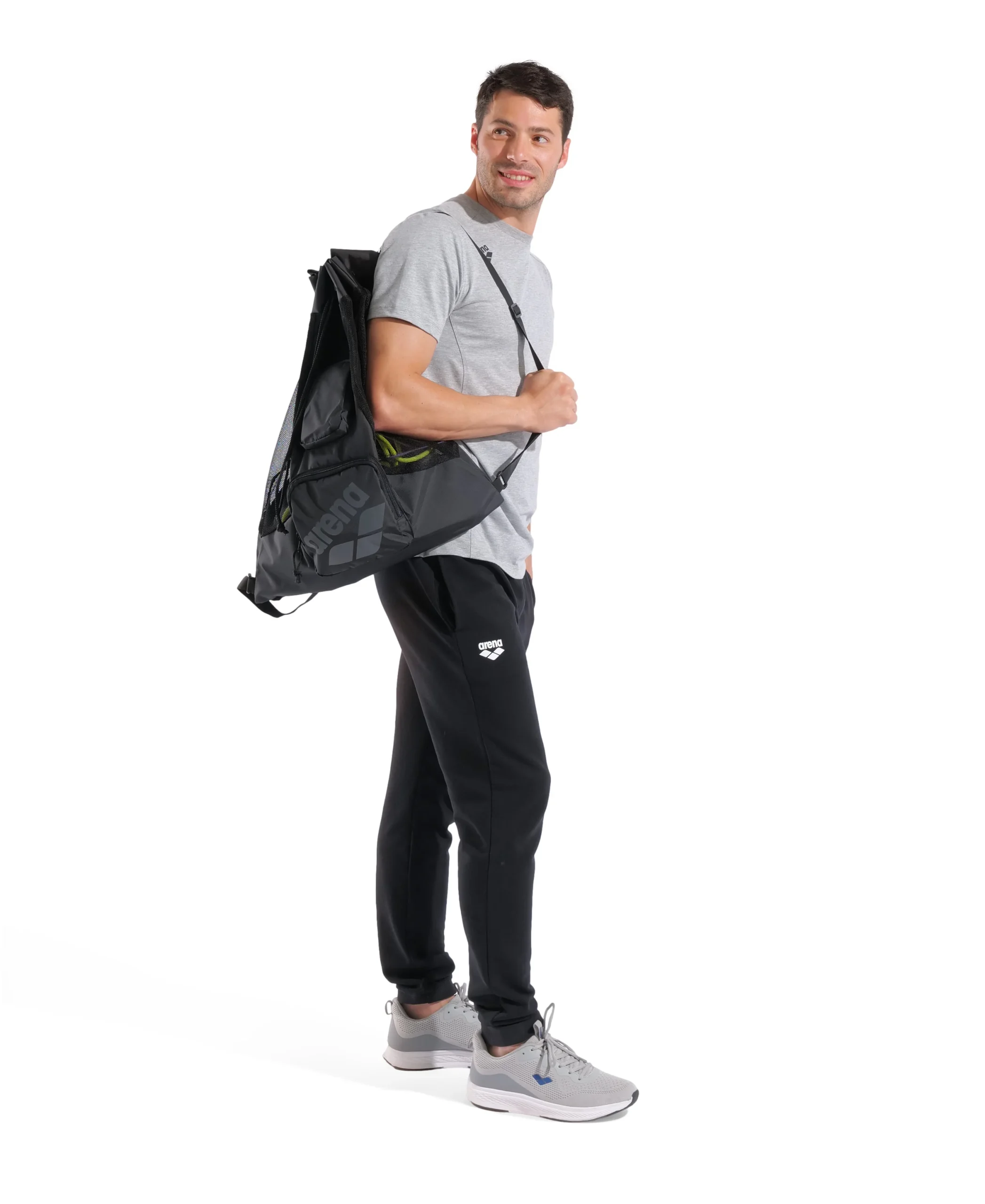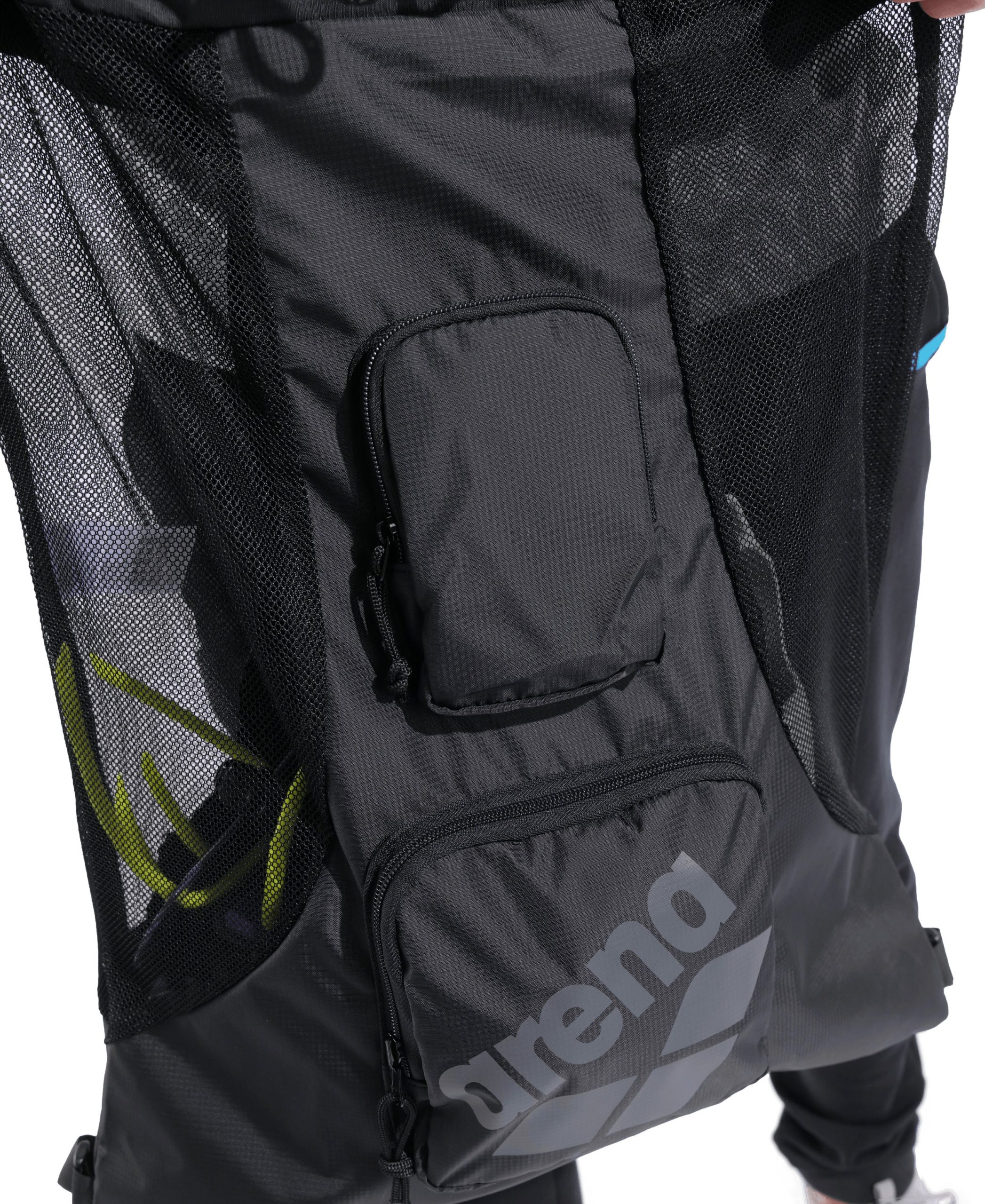 La resistente bolsa de mesh plegable para piscina arena All Set es perfecta para llevar el equipo de entrenamiento u otras pertenencias. Equipada con bolsillos delanteros inteligentes para mantener las peque帽as pertenencias secas. La inteligente construcci贸n de mesh permite que el agua salga. La pr谩ctica bolsa se puede llevar sobre un hombro o como mochila. Con una pr谩ctica trabilla para colgarla en el vestuario o de otra bolsa, est谩 hecha de mesh de poli茅ster duradera y de secado r谩pido. Dimensiones: 65 cm x 50 cm x 1 cm, 40L