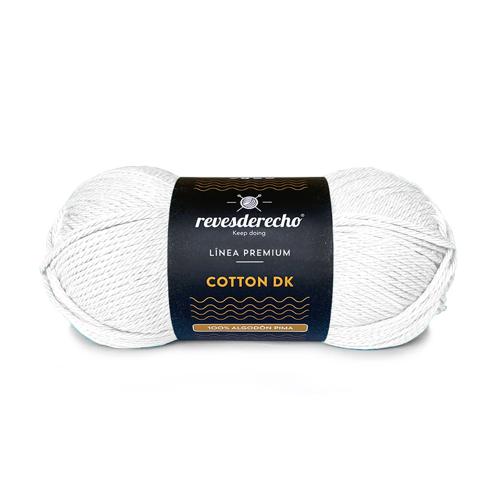 Cotton DK: 100% algodón Pima, gracias a sus fibras largas este hilado se caracteriza por su resistencia, durabilidad, delicado brillo y por una suavidad única en el mundo.