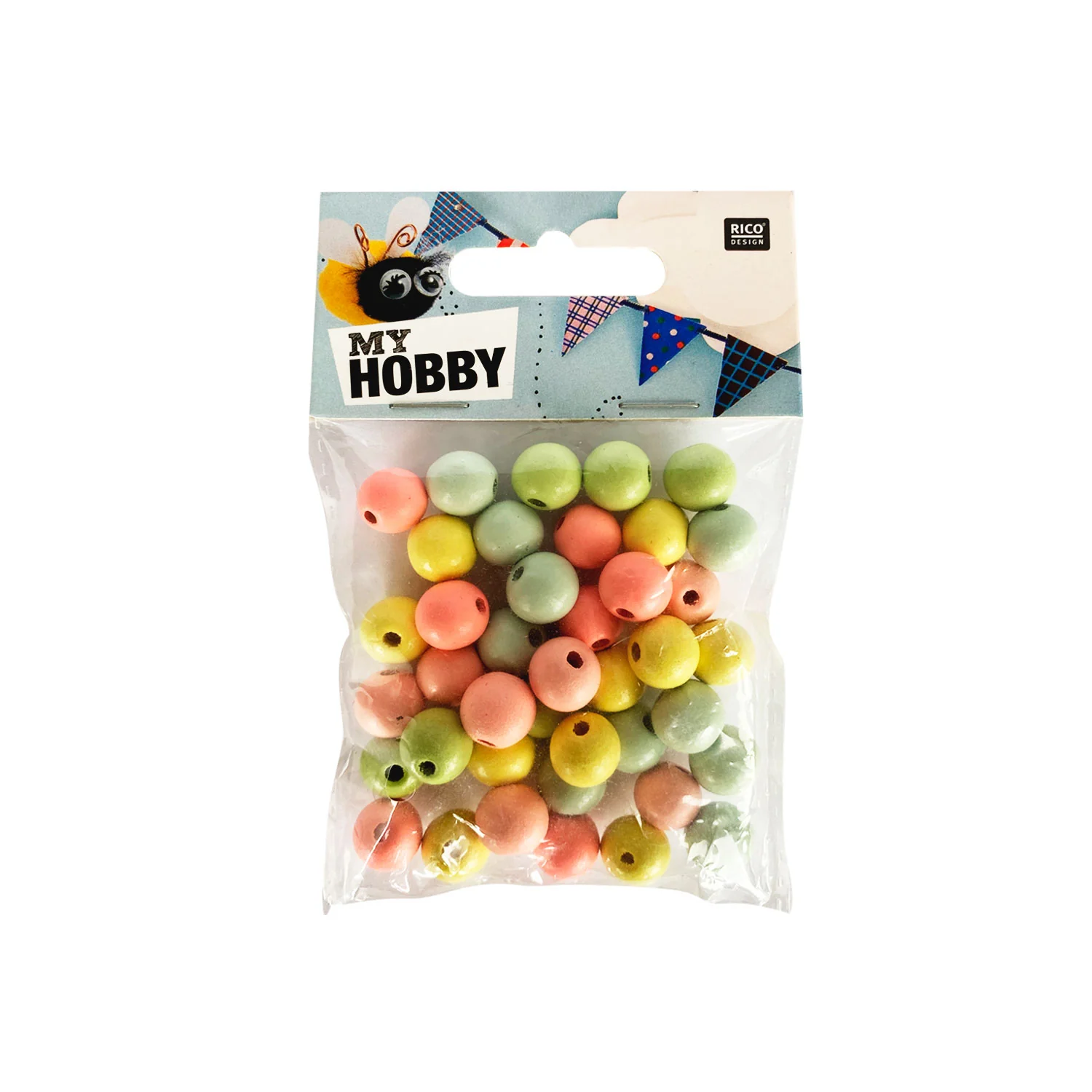 Cuentas de madera en tonos pasteles surtidos de 12mm de grosor.