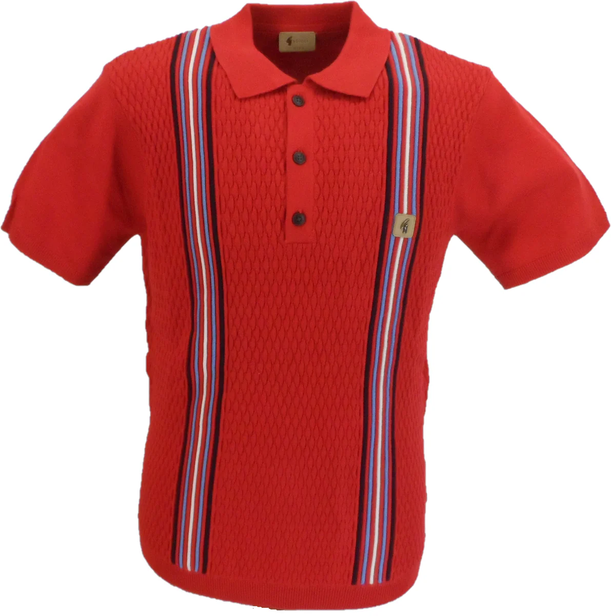 Gabicci Vintage Mens Garnet Red Textured Knitted Polo Shirt