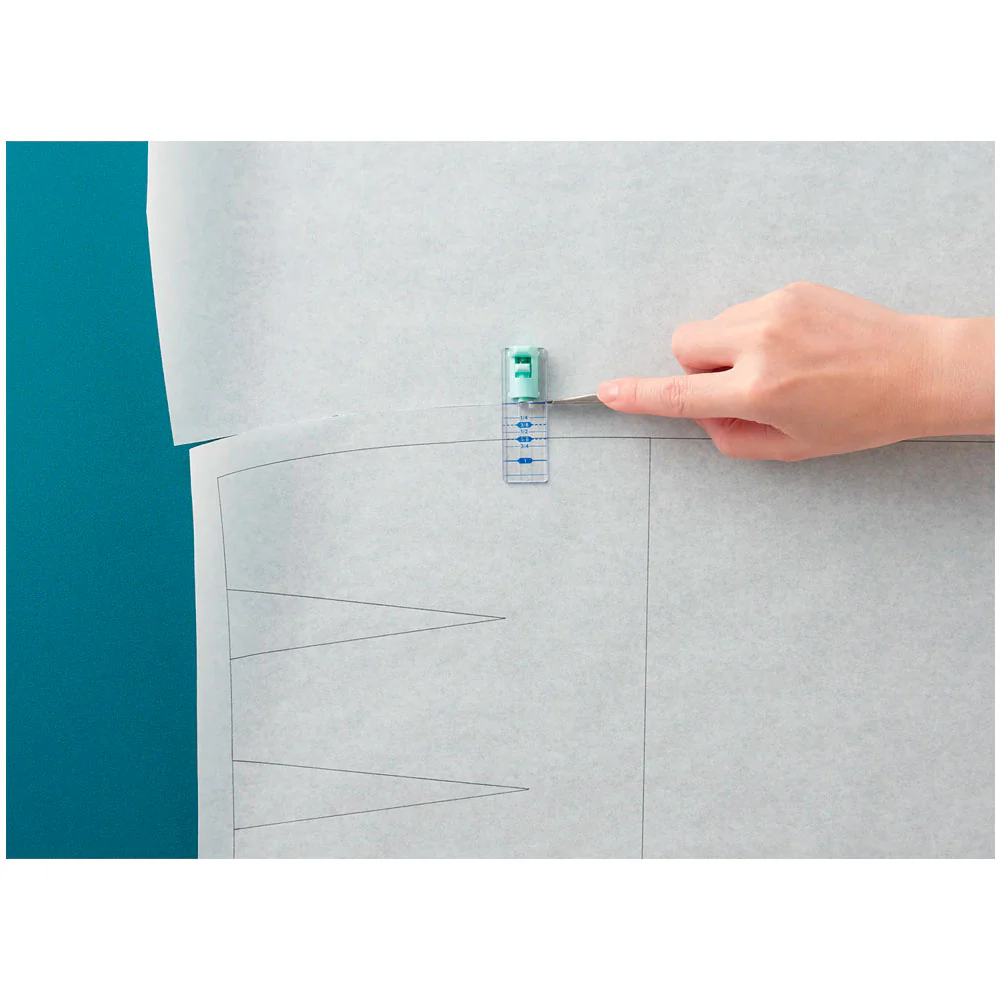 Esta guía de corte será tu aliada a la hora de cortar patrones en papel dejando el margen de costura de tu preferencia: ajustes de medida de 6,4 mm a 31,8mm.