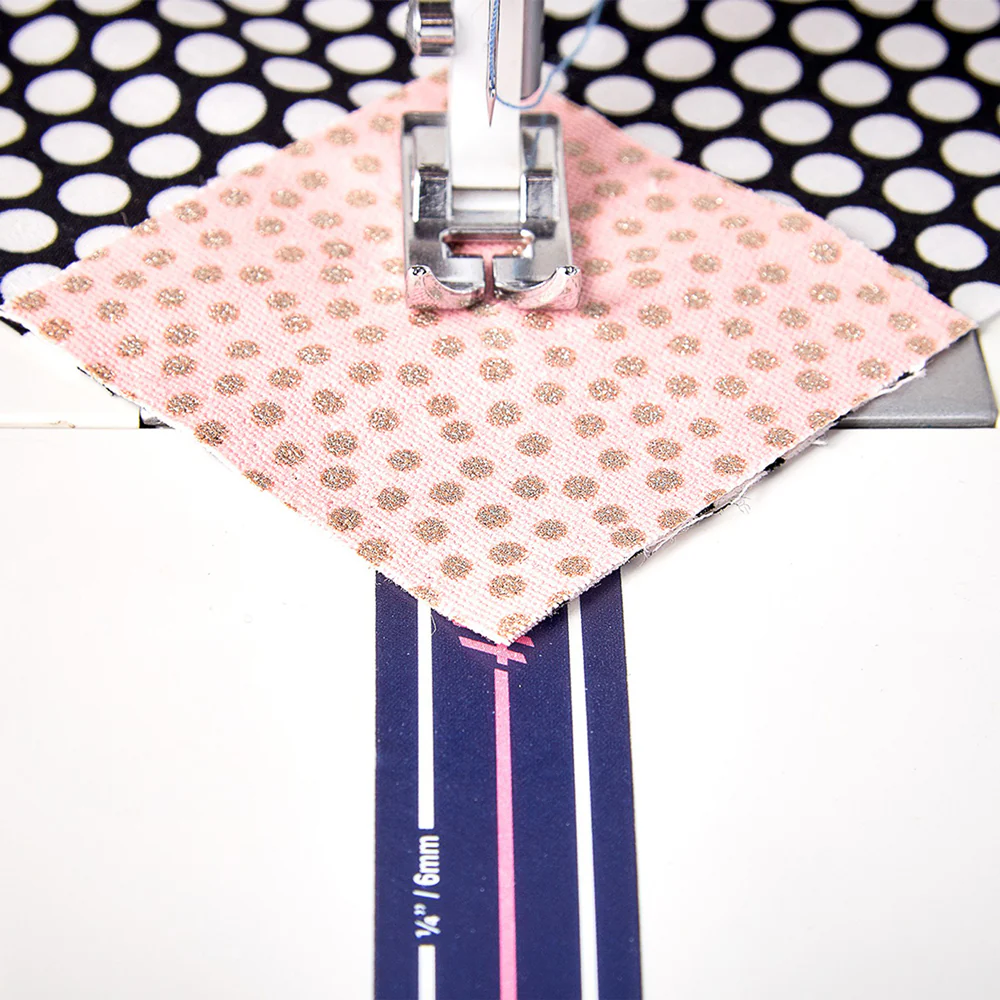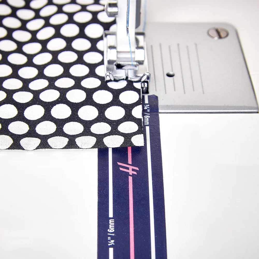 Guía de costura washi tape autoadhesiva súper fácil de usar! Simplemente corta y pega en la máquina de coser, utilizando las líneas blancas de cada lado para conseguir una costura perfecta de ¼» (6mm).