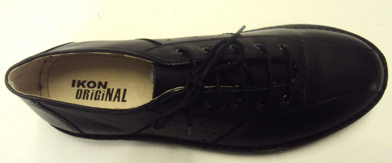 Classic styling soft leather uppers in black. Full leather lining and insoles with the Ikon logo embossed upon it and a hard-wearing welted crepe effect sole.