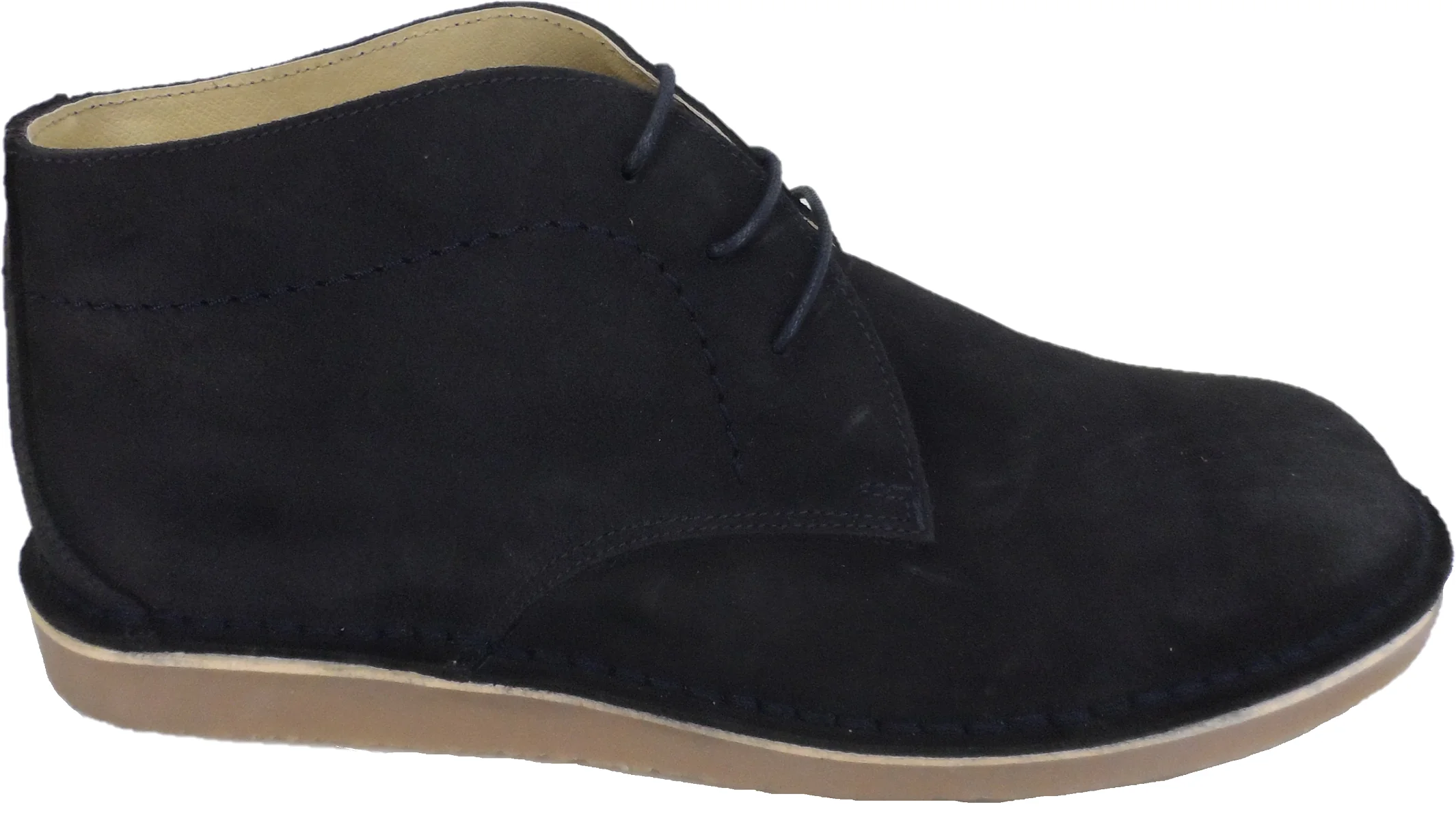 Real leather upper, with 3 eyelets lacing in suede leather upper with and a vulcanized rubber sole and a leather lining. comes with both Grey and Navy Laces