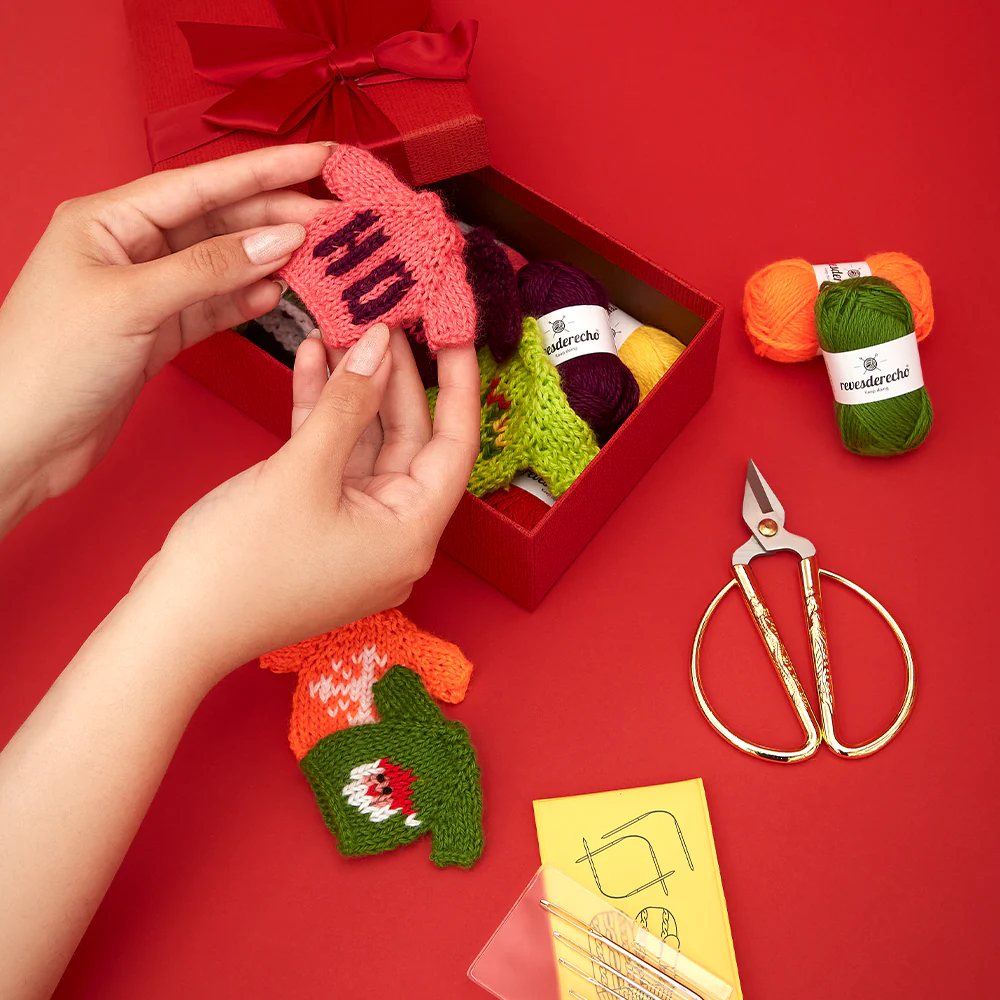 El Kit Let it Snow contiene un clásico y a la vez original diseño navideño, pensado para todas las edades y todos los niveles de tejedores.