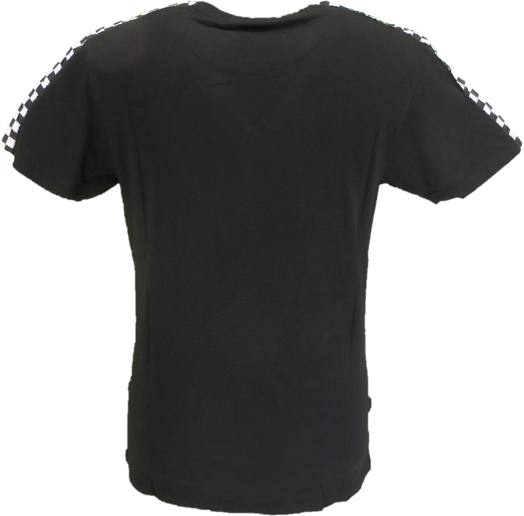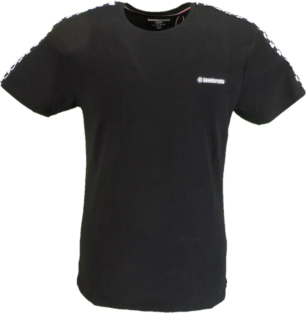 Lambretta Black Checkerboard Taped Shoulder Cotton T Shirt