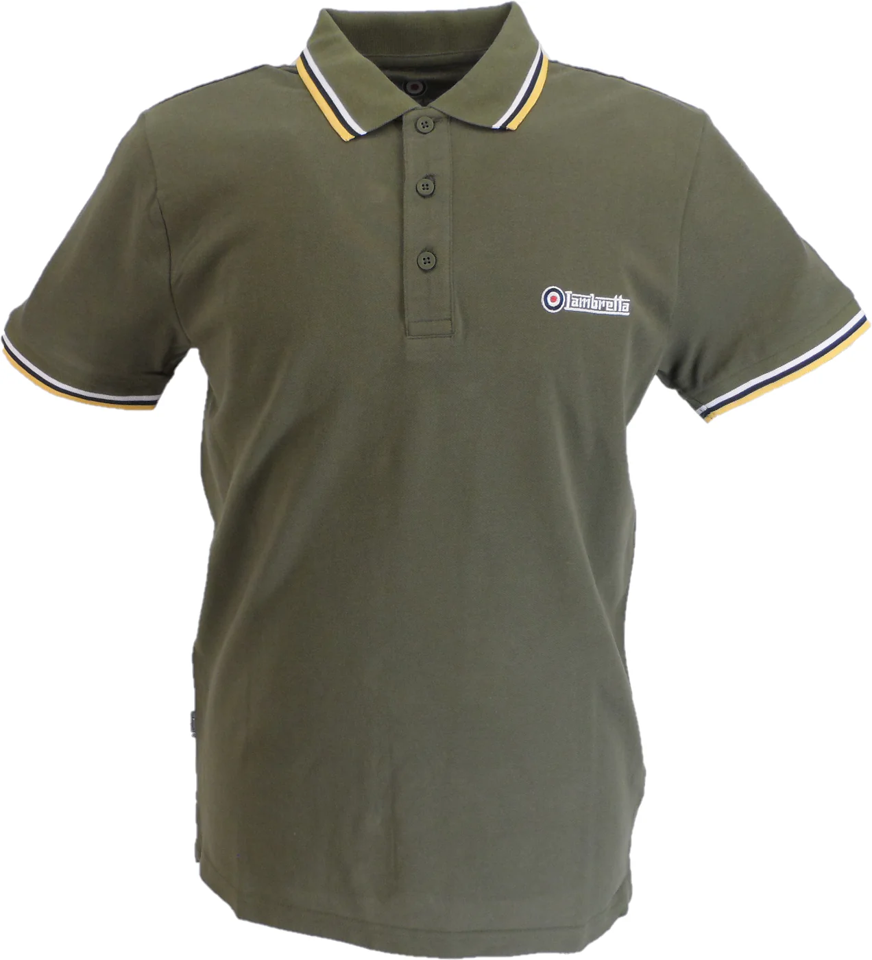 Lambretta Khaki/White/Navy/Gold Retro Target Logo 100% Cotton Polo Shirts
