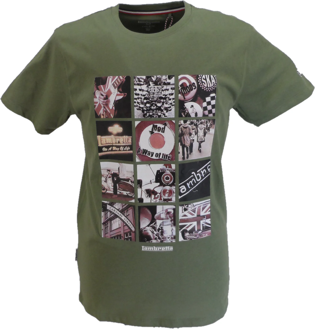 Lambretta Mens Khaki Green Photo Print Retro T Shirt