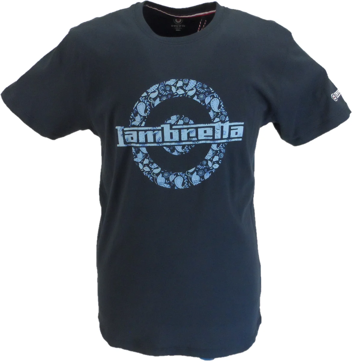 Lambretta Mens Navy Blue Paisley Target 100% Cotton Retro T Shirt