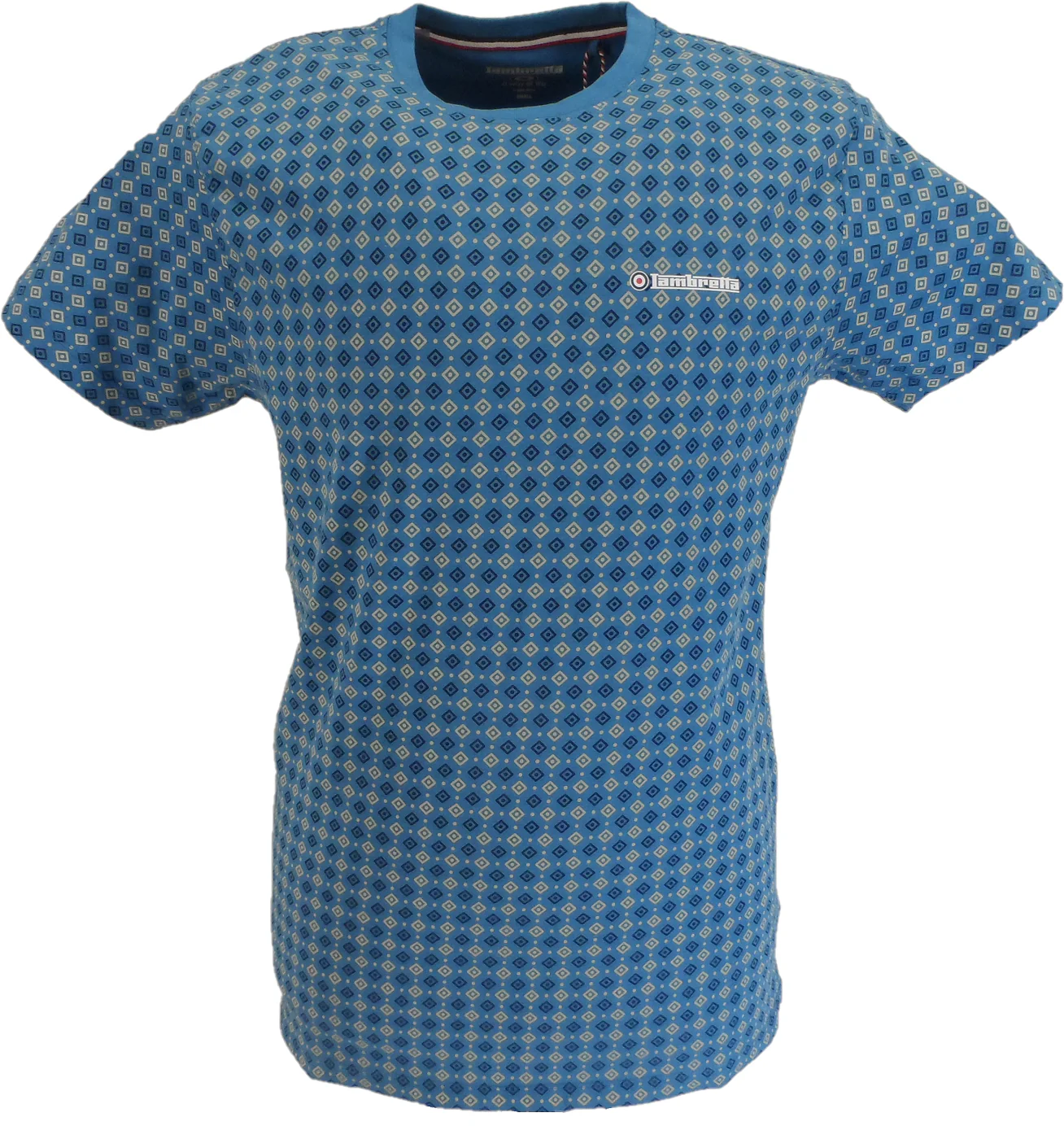 Lambretta Mens Vallarta Blue All Over Geometric Print T-Shirt