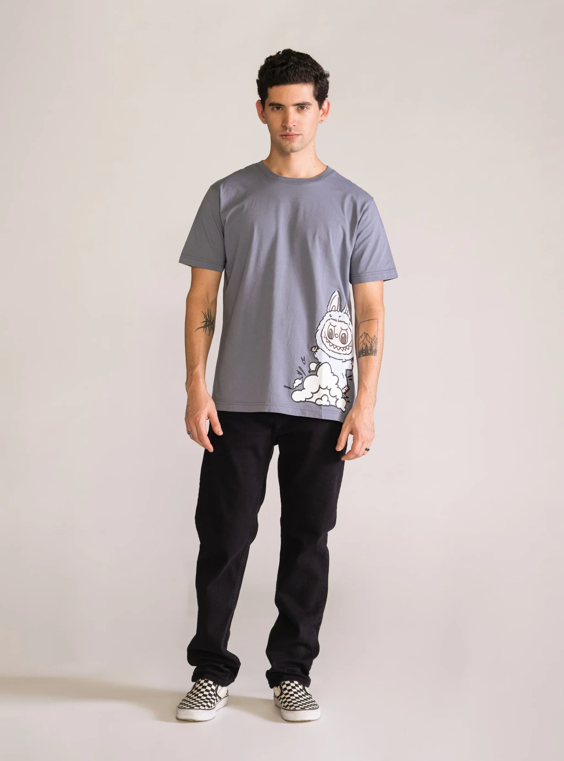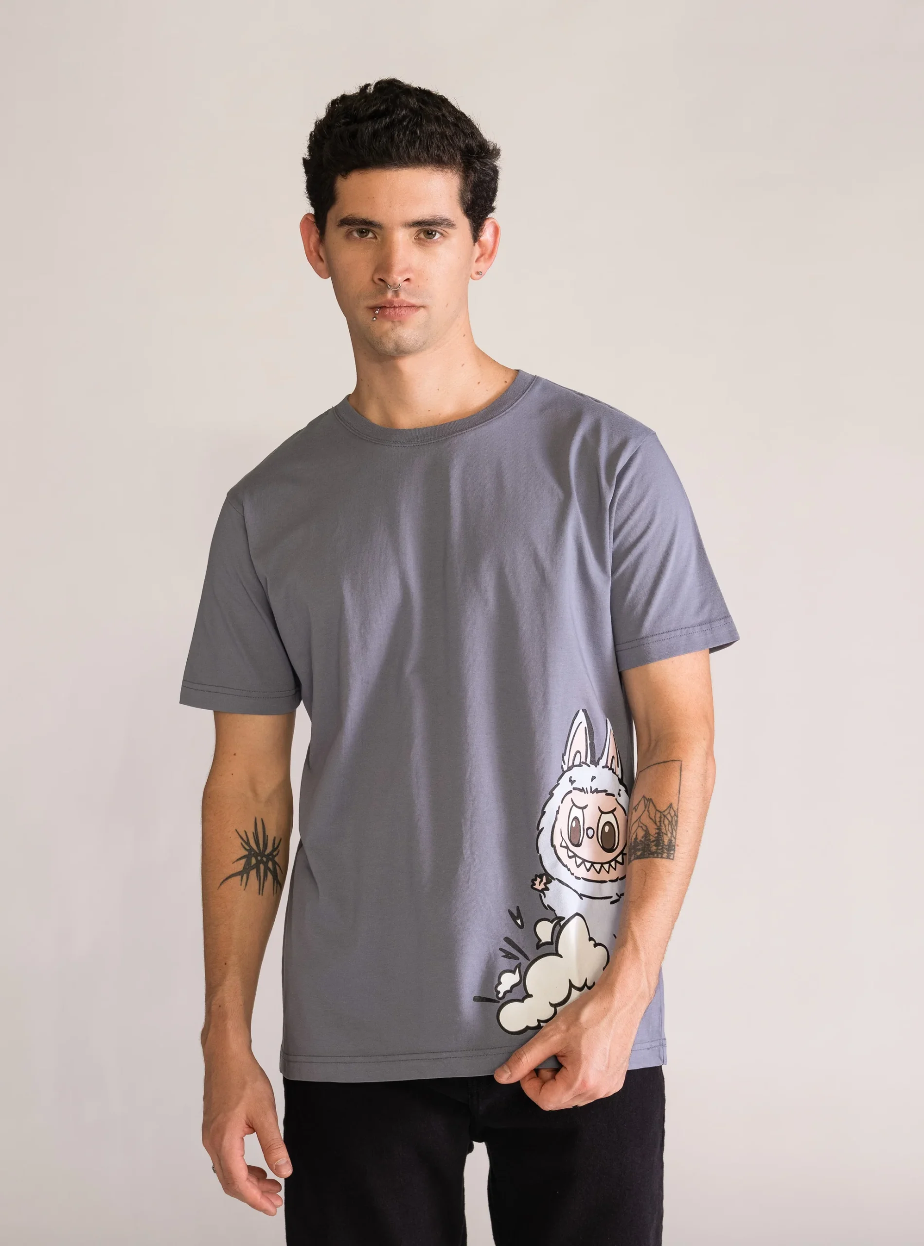 T-shirt color Gris Claro está inspirada en la serie de muñecos coleccionables Labubu, conocida por su estilo único y lleno de personalidad.