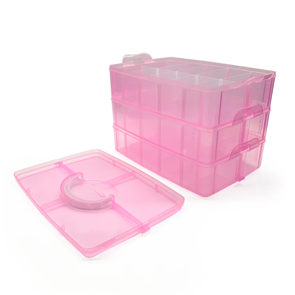 Caja Plástica Organizadora con 30 espacios de aproximadamente 5x8cm. Puedes organizar desde tus pequeños accesorios hasta esos artículos que siempre andan rodando por ahí. Lo mejor de todo es que las divisiones son removibles»,»¡así que puedes armar los espacios a tu gusto y necesidad!