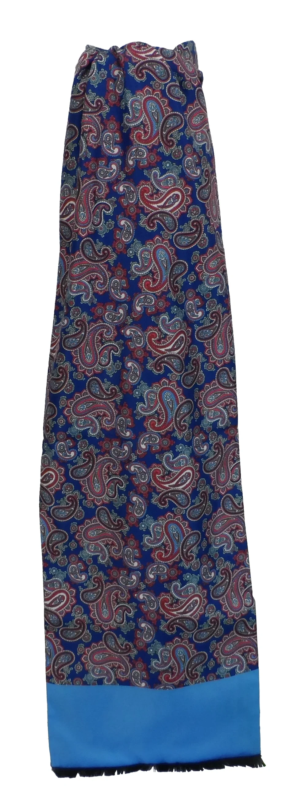 Mazeys Mens Classic Retro Mod Mod Tassled Scarf Navy Sky Paisley