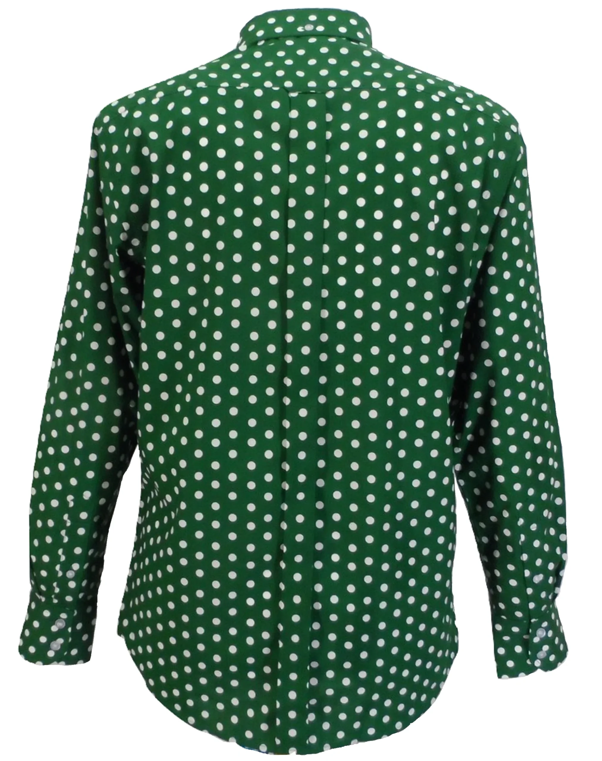 Mazeys Mens Green and White Retro Mod Polka Dot 100% Cotton Shirts…
