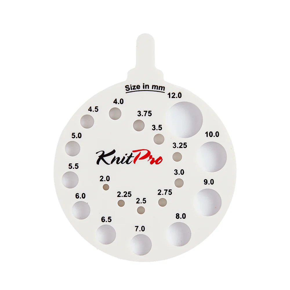 Los medidores de palillos Knit Pro son perfectos para saber el tamaño de tus palillos cuando ha pasado el tiempo y el tamaño no es visible en el palillo. Un accesorio que no puede faltar en una tejedora!