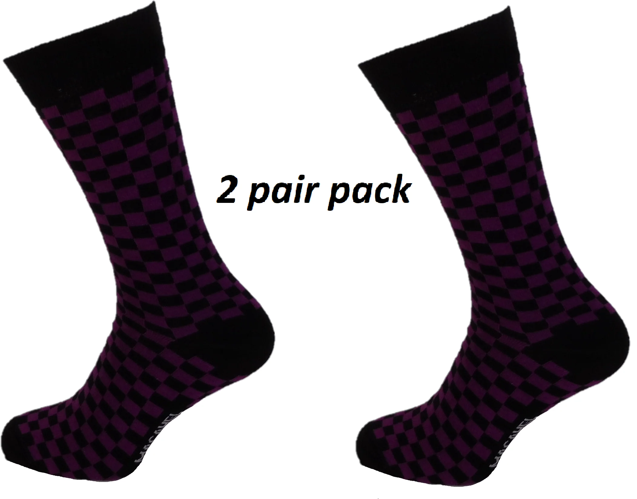 Mens 2 Pair Pack Black and Purple Check Retro Socks