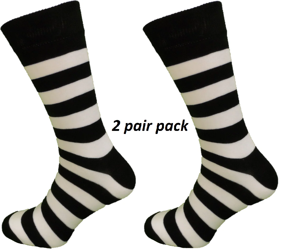 Mens 2 Pair Pack Black/White Striped Retro Socks