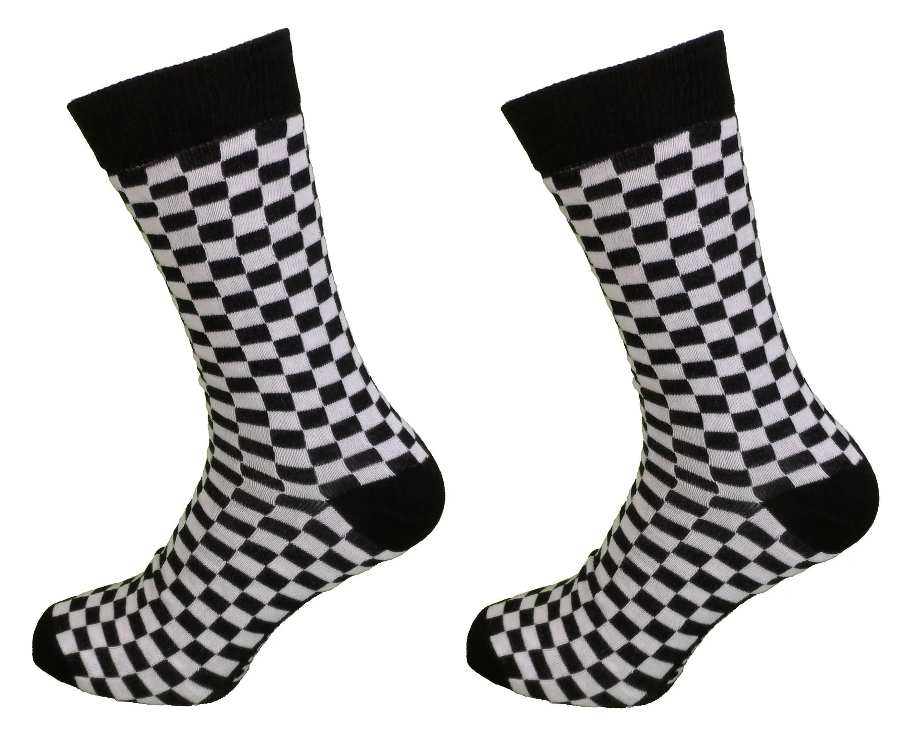 Mens 2 Pair Pack Ska 2 Tone Check Retro Socks