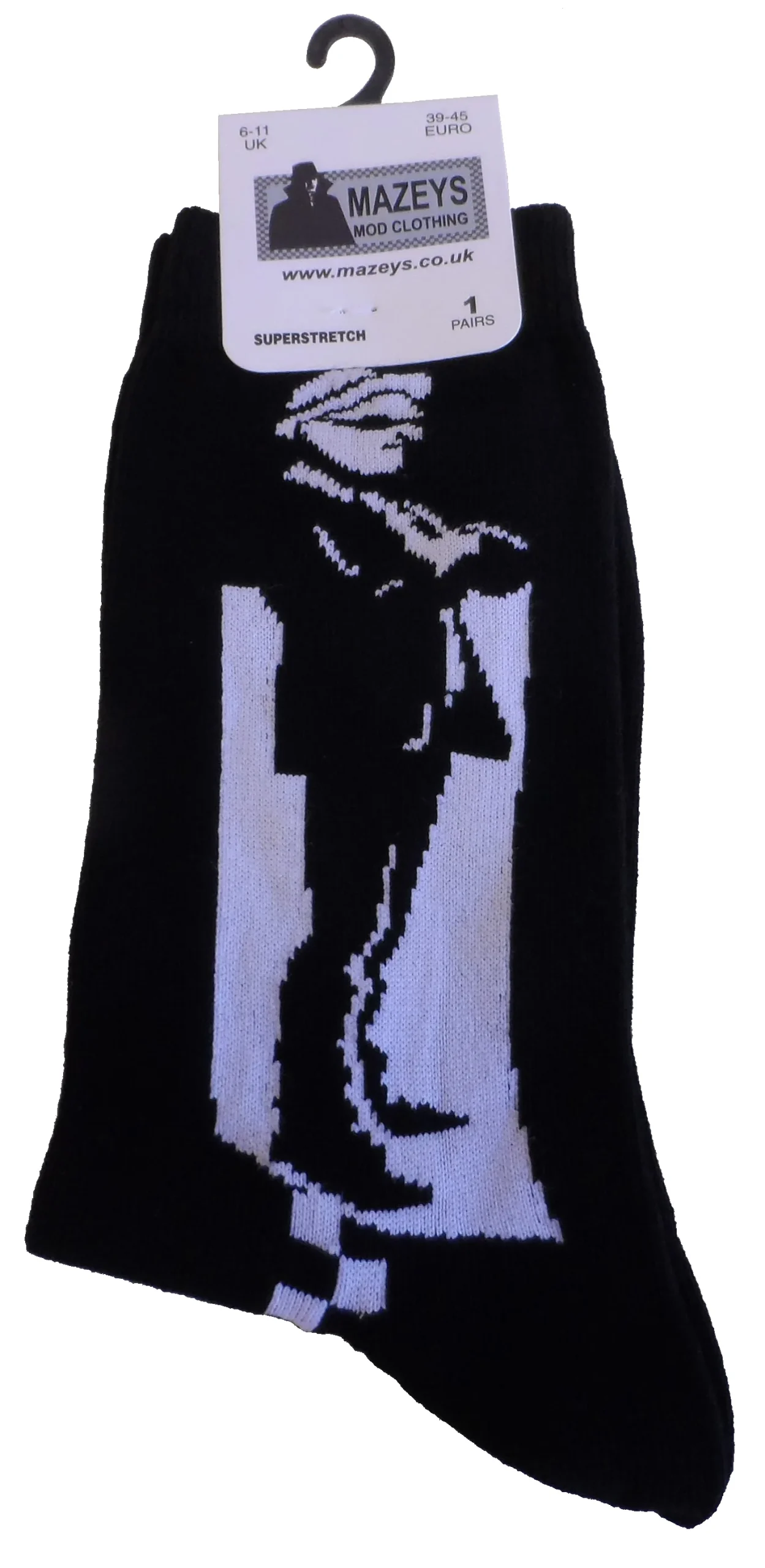 Mens 2 Pair Pack Ska Man Black 2 Tone Retro Socks